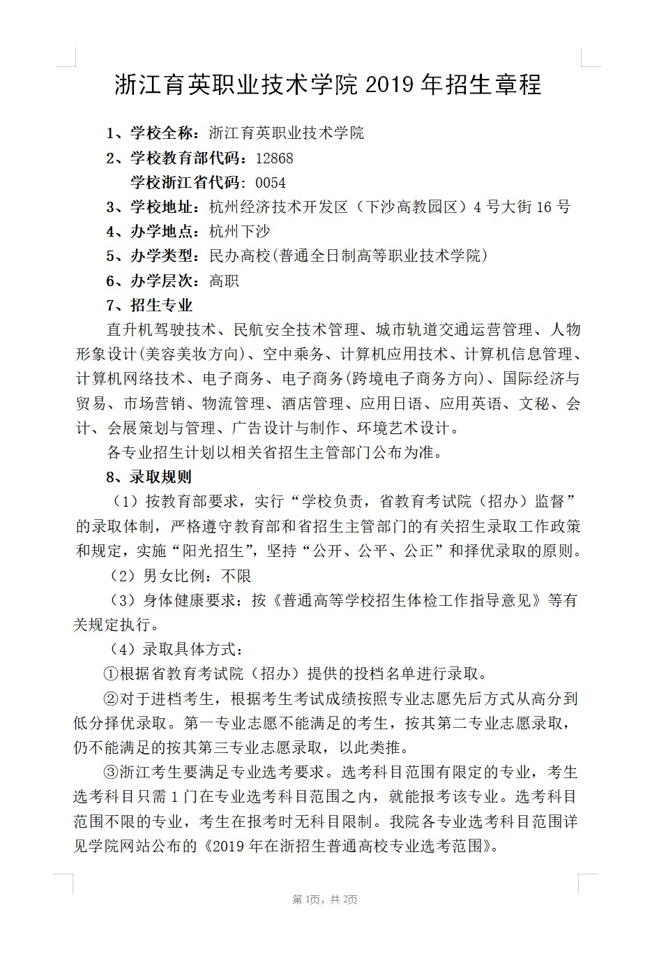 招生咨询 招生公告 报考指南 提前招生 历年分数 2025年招生专栏 录取查询 在线咨询 联系我们 地址:杭州市钱塘区4号大街16号 邮编:310018 电话:0571-86911032、86877189 报考指南 当前位置:首页 >> 招生咨询 >> 报考指南 学院2019年招生章程 时间:2019-06-11