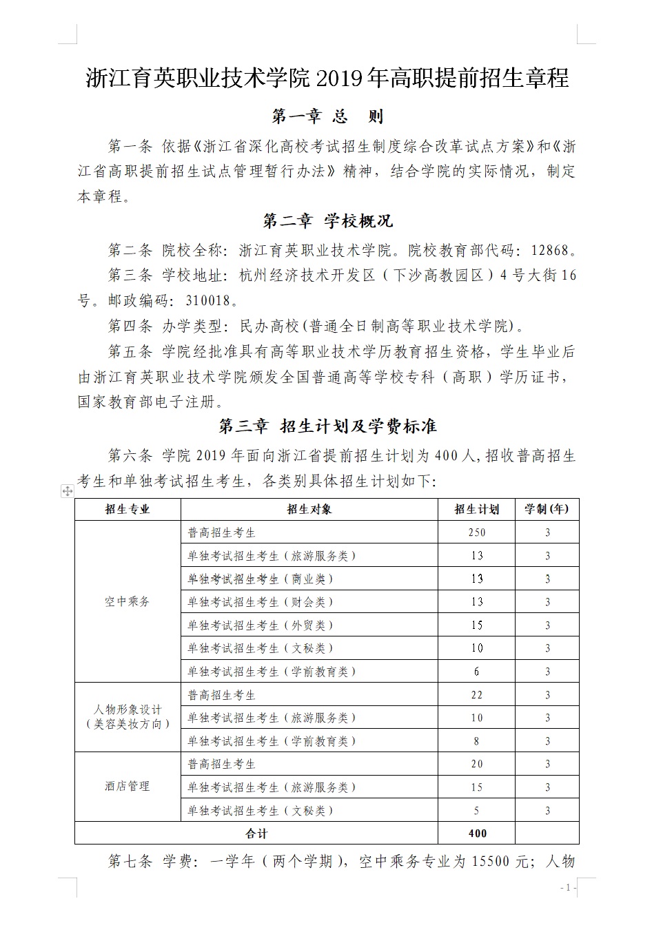 招生咨询 招生公告 报考指南 提前招生 历年分数 2025年招生专栏 录取查询 在线咨询 联系我们 地址:杭州市钱塘区4号大街16号 邮编:310018 电话:0571-86911032、86877189 报考指南 当前位置:首页 >> 招生咨询 >> 报考指南 我院2019年高职提前招生章程 时间:2019-02-21