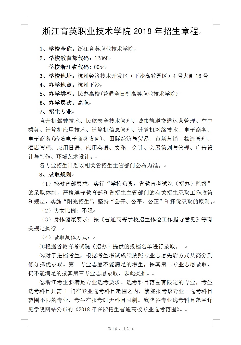 招生咨询 招生公告 报考指南 提前招生 历年分数 2025年招生专栏 录取查询 在线咨询 联系我们 地址:杭州市钱塘区4号大街16号 邮编:310018 电话:0571-86911032、86877189 报考指南 当前位置:首页 >> 招生咨询 >> 报考指南 我院2018年招生章程 时间:2018-06-08