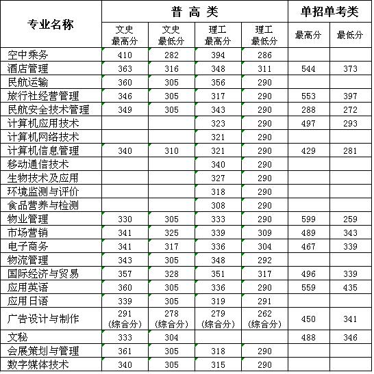 招生咨询 招生公告 报考指南 提前招生 历年分数 2025年招生专栏 录取查询 在线咨询 联系我们 地址:杭州市钱塘区4号大街16号 邮编:310018 电话:0571-86911032、86877189 报考指南 当前位置:首页 >> 招生咨询 >> 报考指南 我院2010年各专业录取新生最高分和最低分 时间:2011-03-14 2010年普通高考组档线:文史:283分,理工:283分,艺文:205分(综合分249分),艺理:196分(综合分245);中职计算机类:220分,文秘类:287分,旅游服务类:267分,商业 类:280分,外贸类:372,工艺美术类:301分,安全防范类:233分。