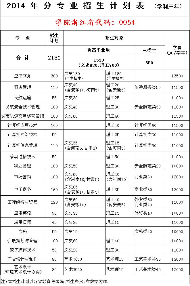 招生咨询 招生公告 报考指南 提前招生 历年分数 2025年招生专栏 录取查询 在线咨询 联系我们 地址:杭州市钱塘区4号大街16号 邮编:310018 电话:0571-86911032、86877189 报考指南 当前位置:首页 >> 招生咨询 >> 报考指南 我院2014年分专业分类别招生计划 时间:2014-06-09