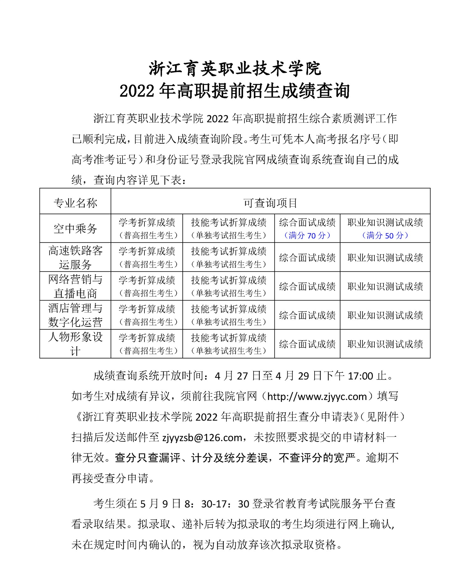 招生咨询 招生公告 报考指南 提前招生 历年分数 2025年招生专栏 录取查询 在线咨询 联系我们 地址:杭州市钱塘区4号大街16号 邮编:310018 电话:0571-86911032、86877189 招生公告 当前位置:首页 >> 招生咨询 >> 招生公告 浙江育英职业技术学院 2022年高职提前招生成绩查询 时间:2022-04-27 附件:浙江育英职业技术学院2022年高职提前招生查分申请表