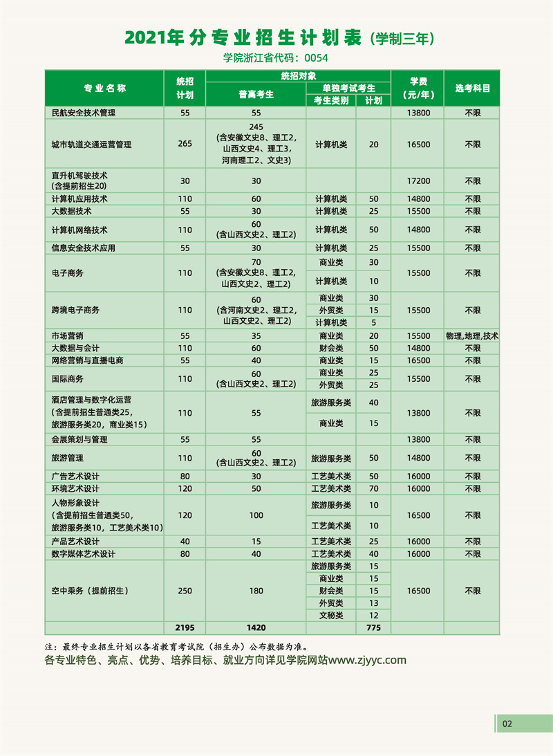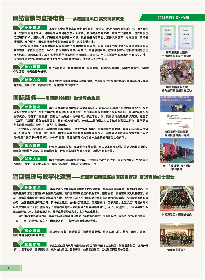 招生咨询 招生公告 报考指南 提前招生 历年分数 2025年招生专栏 录取查询 在线咨询 联系我们 地址:杭州市钱塘区4号大街16号 邮编:310018 电话:0571-86911032、86877189 招生公告 当前位置:首页 >> 招生咨询 >> 招生公告 2021年招生简章(彩页) 时间:2021-06-20