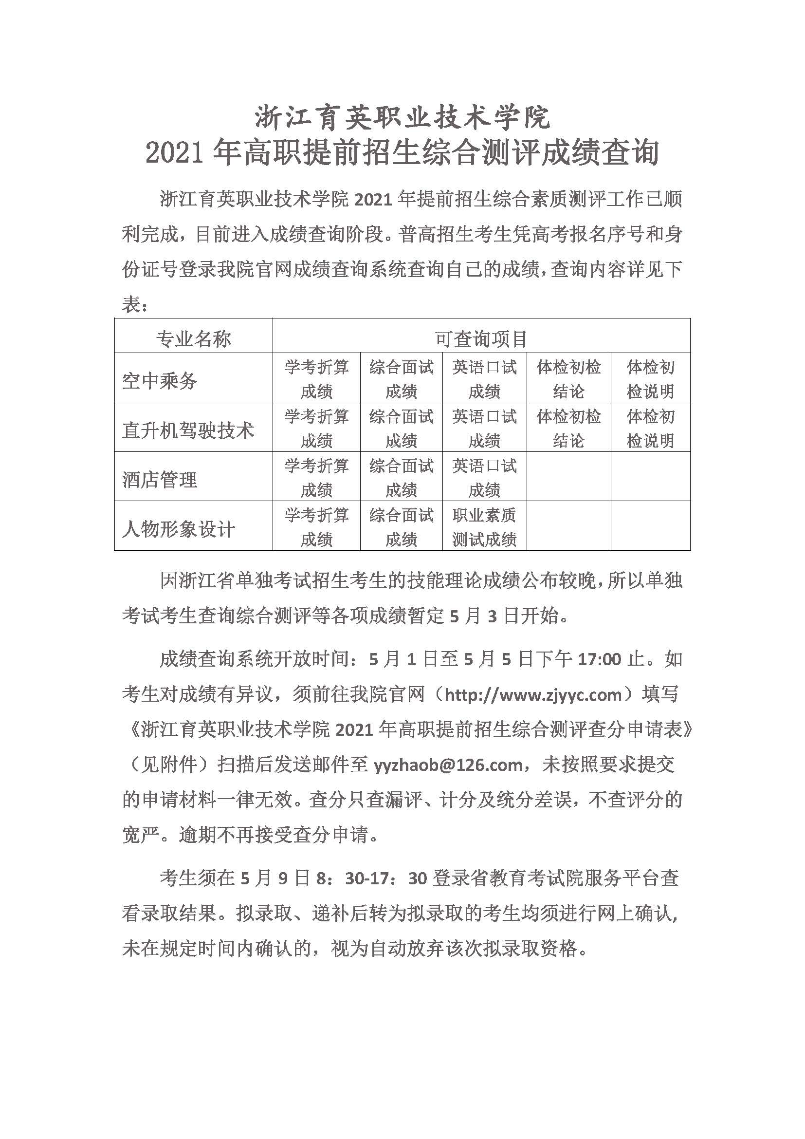 招生咨询 招生公告 报考指南 提前招生 历年分数 2025年招生专栏 录取查询 在线咨询 联系我们 地址:杭州市钱塘区4号大街16号 邮编:310018 电话:0571-86911032、86877189 招生公告 当前位置:首页 >> 招生咨询 >> 招生公告 浙江育英职业技术学院2021年高职提前招生综合测评成绩查询 时间:2021-05-01 1、点击进入成绩查询系统 2、浙江育英职业技术学院2021年高职提前招生综合测评查分申请表下载