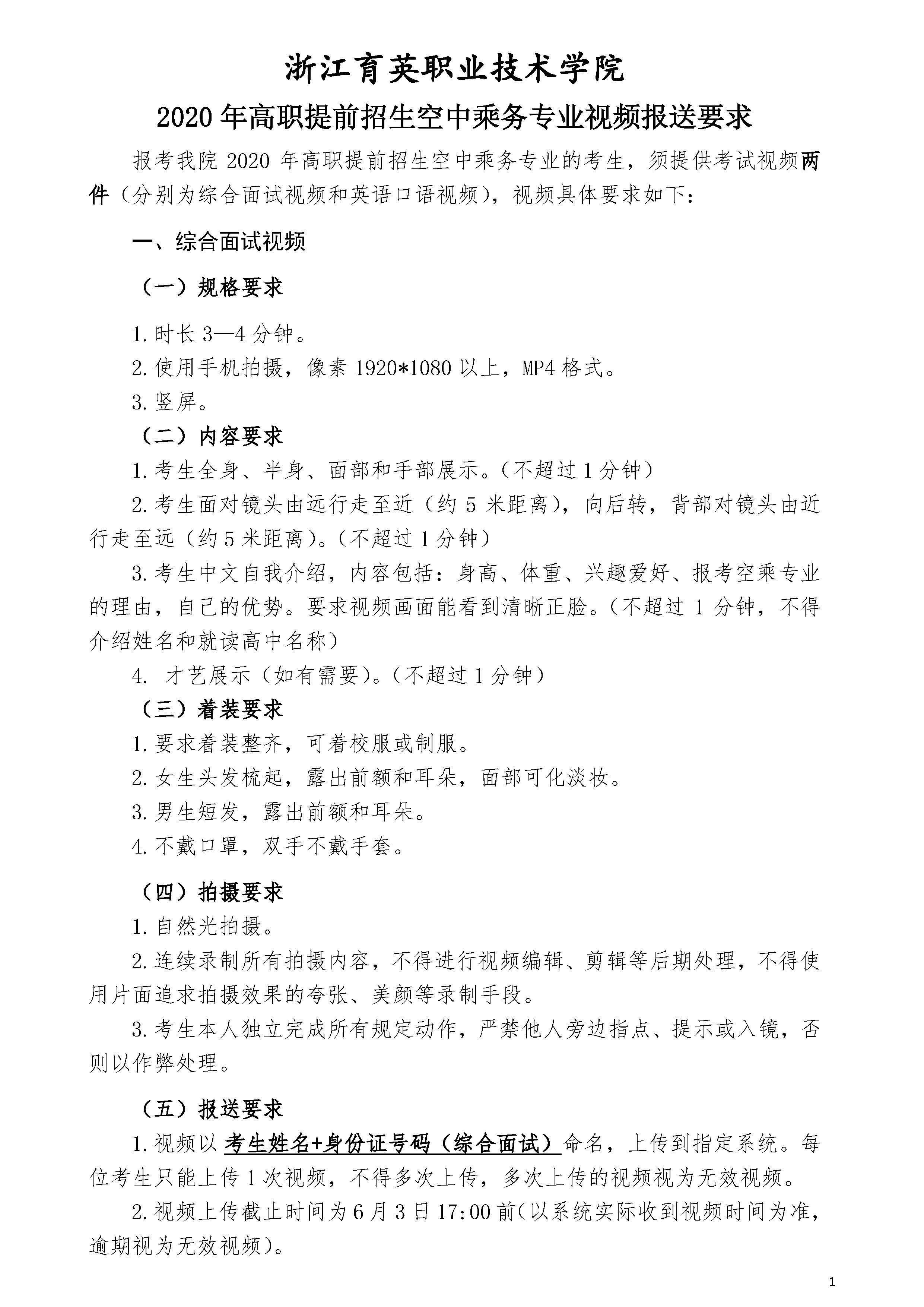 招生咨询 招生公告 报考指南 提前招生 历年分数 2025年招生专栏 录取查询 在线咨询 联系我们 地址:杭州市钱塘区4号大街16号 邮编:310018 电话:0571-86911032、86877189 招生公告 当前位置:首页 >> 招生咨询 >> 招生公告 2020年高职提前招生空中乘务专业视频报送要求 时间:2020-05-10