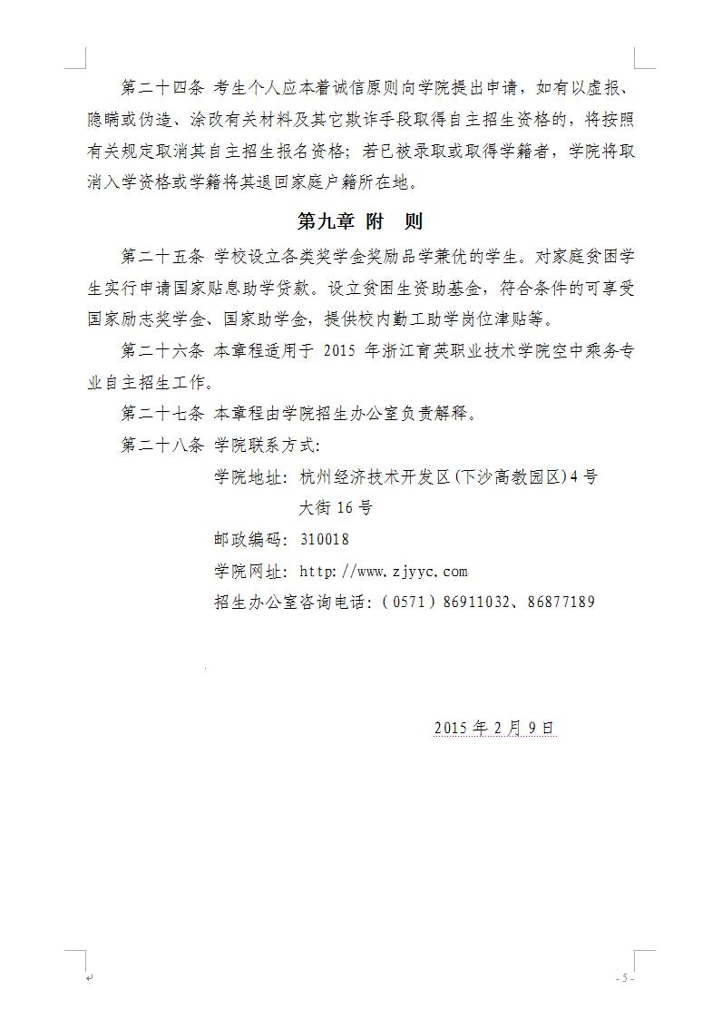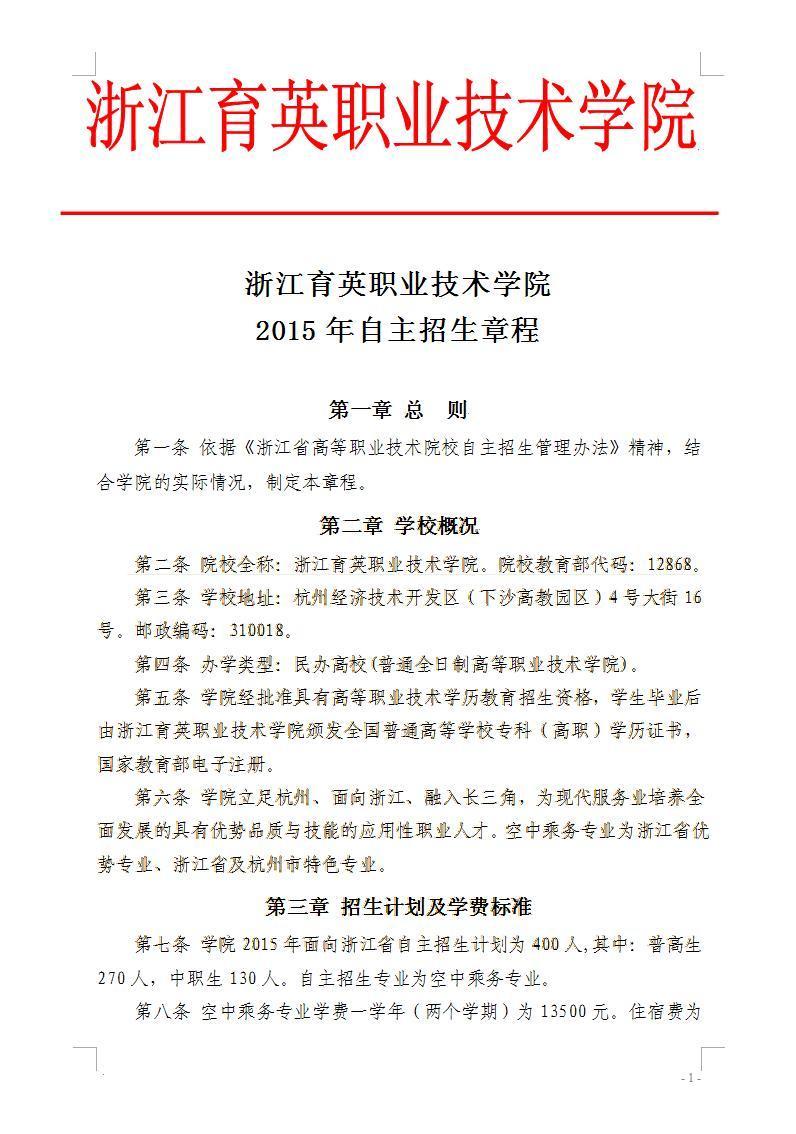 招生咨询 招生公告 报考指南 提前招生 历年分数 2025年招生专栏 录取查询 在线咨询 联系我们 地址:杭州市钱塘区4号大街16号 邮编:310018 电话:0571-86911032、86877189 招生公告 当前位置:首页 >> 招生咨询 >> 招生公告 浙江育英职业技术学院2015年自主招生章程 时间:2015-02-12