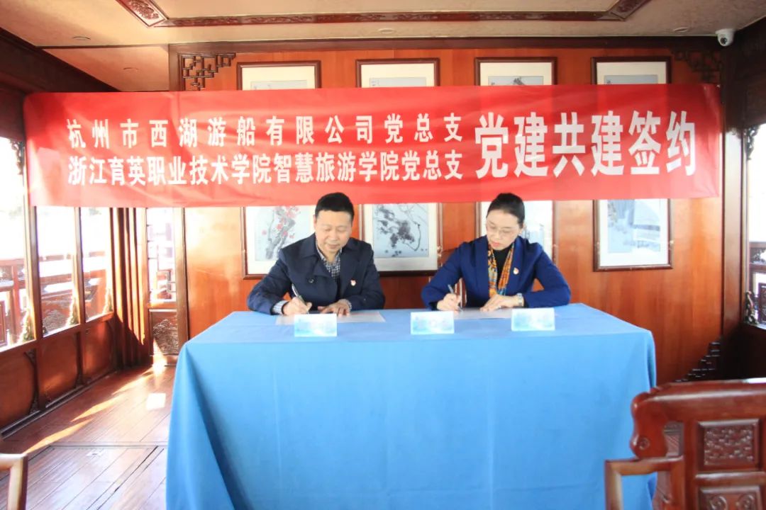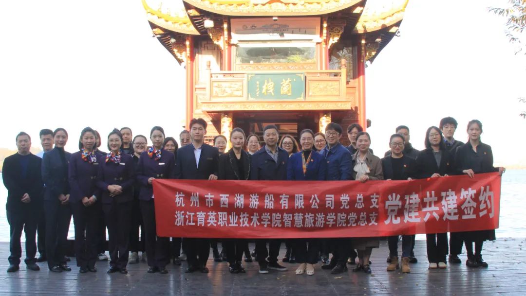 活动由西湖游船团委书记刘倪华、我校西湖游船实习生21旅管B史仕权共同主持。红色画舫忆初心。如果说历史是最好的教科书,那么开启一段湖上专属“红色船旅”就是一次重温红色回忆、践行初心使命的绝佳体验。此次活动乘坐的这艘1比1还原清明上河图画舫的“兰栧号”画舫,其背后的故事可不一般。何书记介绍,作为G20峰会元首接待用船的两艘船之一,兰栧号最早诞生于1989年,是西湖上首艘豪华画舫,船体满是中国风。游船是西湖的眉目,流动的风景,是西湖世界文化景观遗产的重要组成部分。世人眼中妩媚多姿,温柔秀美的西湖,也曾怀抱了中国共产党人的初心和使命、情怀与担当。寻访足迹担使命。此次“红色船旅”主打“追随足迹”现场学形式,沿途“打卡”一系列体现西湖红色印记的代表性旅游景点和纪念场所,游览内容非常丰富。从湖滨码头出发,随着船只徐徐前行,沿途观赏湖滨公园、断桥、白堤、平湖秋月等著名景点,最后登临三潭印月“小瀛洲”,跟随“红色船旅”定制专线资深讲解员的脚步,沿着九曲桥,通过实景、实物与“红色系列历史画片”相结合,寻访毛泽东同志、刘少奇同志、周恩来同志、邓小平同志四位伟人相关的四处红色印记,聆听柔情的西湖之水诉说这一段段闪烁着星星之火的红色历史。党建共建谋发展。红色游线体验结束,双方就红色资源开发、红色游线精品打造、红色宣讲员培养和实习实践基地建设等方面展开了深入的探讨。校企双方达成党建共建协议,发挥好党建引领、结对共建的凝心聚力作用,聚焦组织、阵地、活动、服务、队伍等方面深化合作,探索“校企联动 实践育人”的融合模式,凝聚共识、凝聚智慧、凝聚力量,着力在课程建设、教学创新、育人特色等方面出实招、下功夫、求实效,为校企高质量发展增添新的活力。