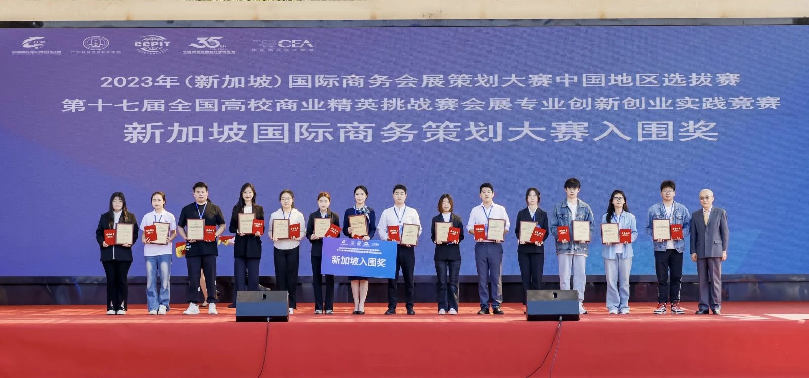 同时,该组作品也顺利的入围了全国总决赛精英赛,经过现场角逐,获新加坡入围奖。据悉,会展调研赛道仅有12所院校12组作品入围全国精英赛,本赛道为本科专业共同PK,其中,入围的高职院校仅为3所。