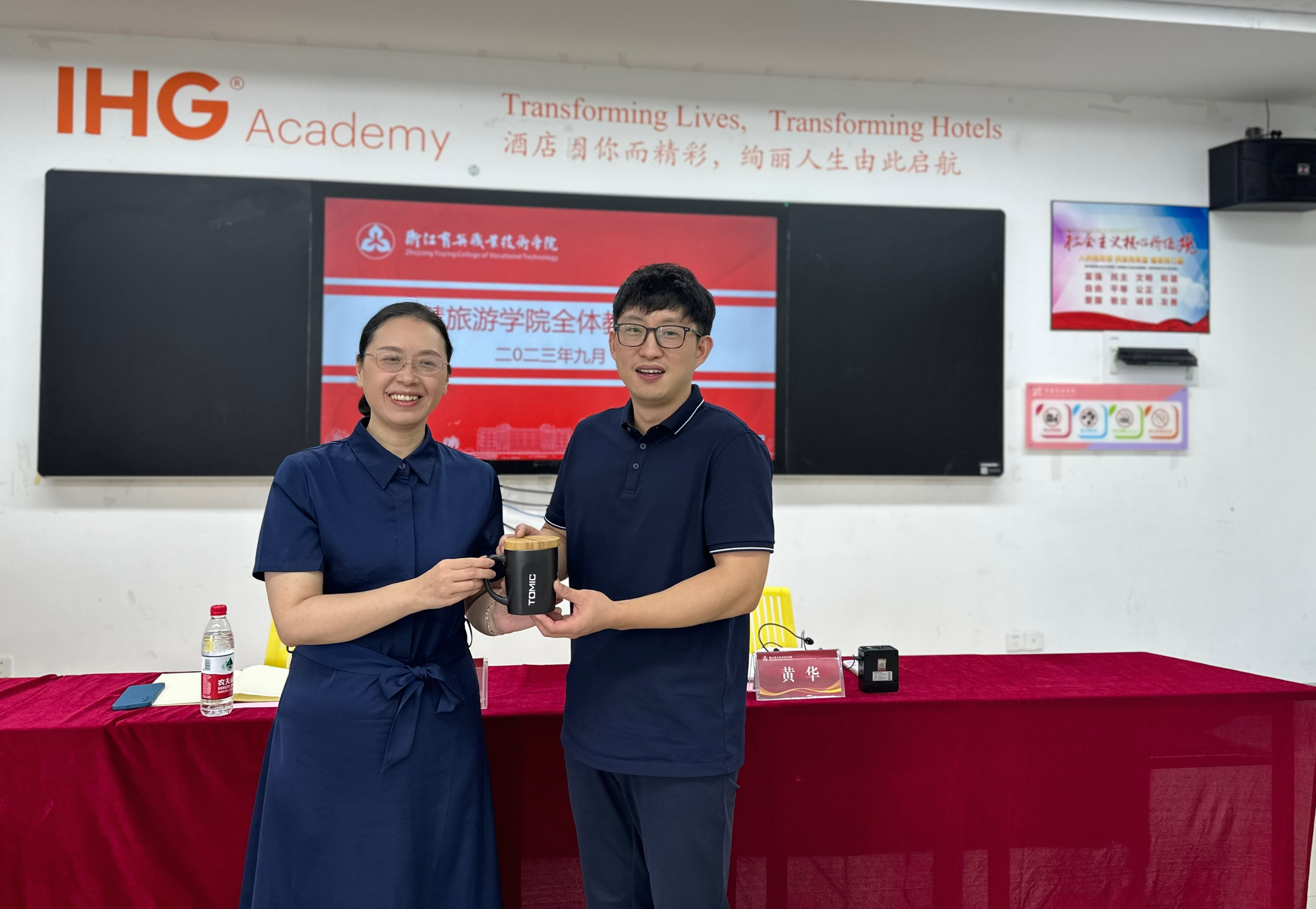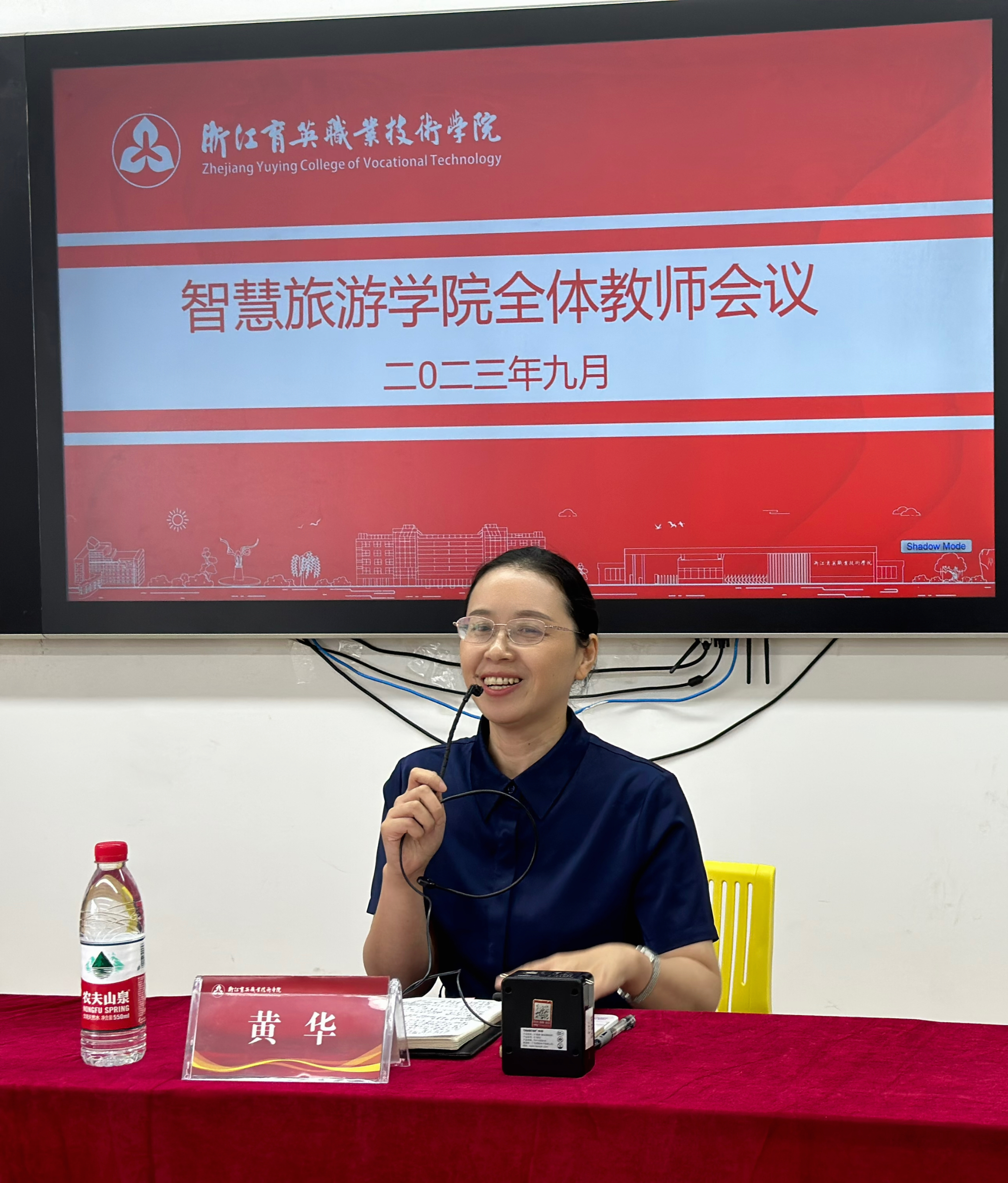 会议第二项,院长黄华对新加入智慧旅游学院的教师表示了欢迎。本学期,智慧旅游学院旅游管理专业教研室及学工办各有一位新老师加入,新鲜血液的加入为学院注入了新的力量,使得我院旅游管理专业结构更加完整、辅导员队伍更有实力。