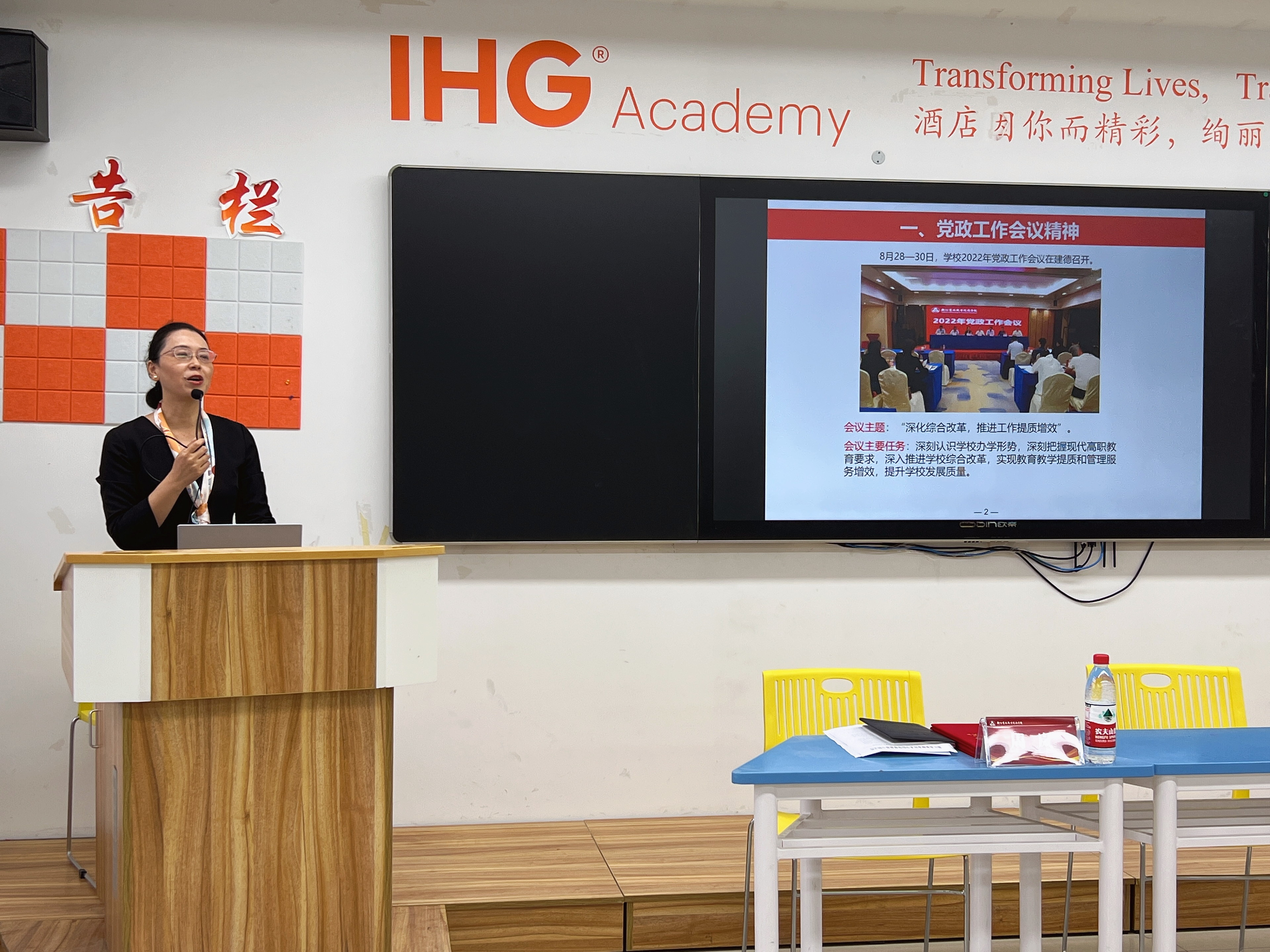 会议第一项,副院长副书记谢剑峰对新加入智慧旅游学院的教师表示了欢迎,新鲜血液的加入为学院注入了新的力量,使得我们的酒店专业结构更加完整,师资队伍更有实力。