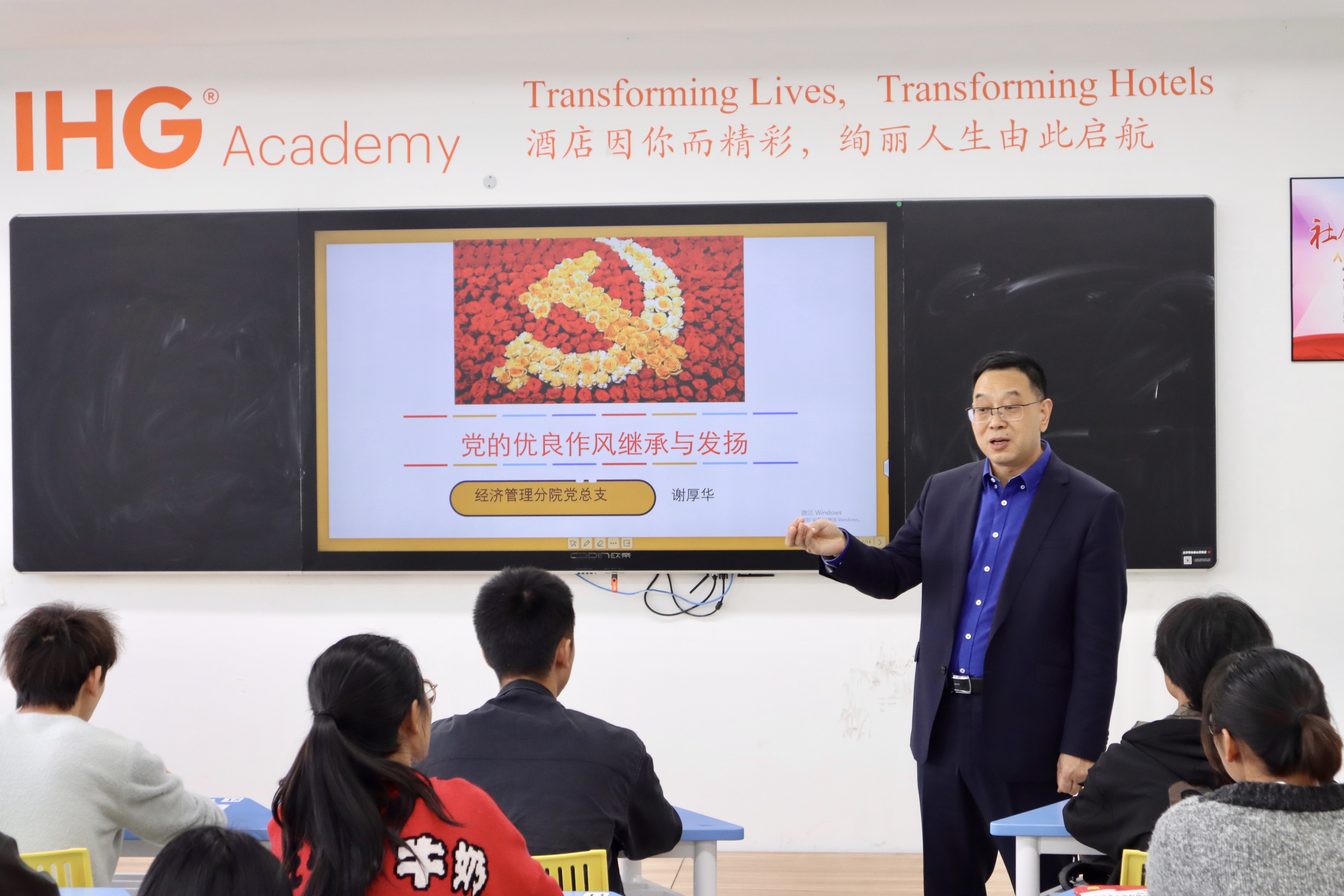 2020年11月10日中午12:40分,经济管理分院院长谢厚华老师为党校学员们上了一堂主题为“党的优良作风继承与发扬”的课程。