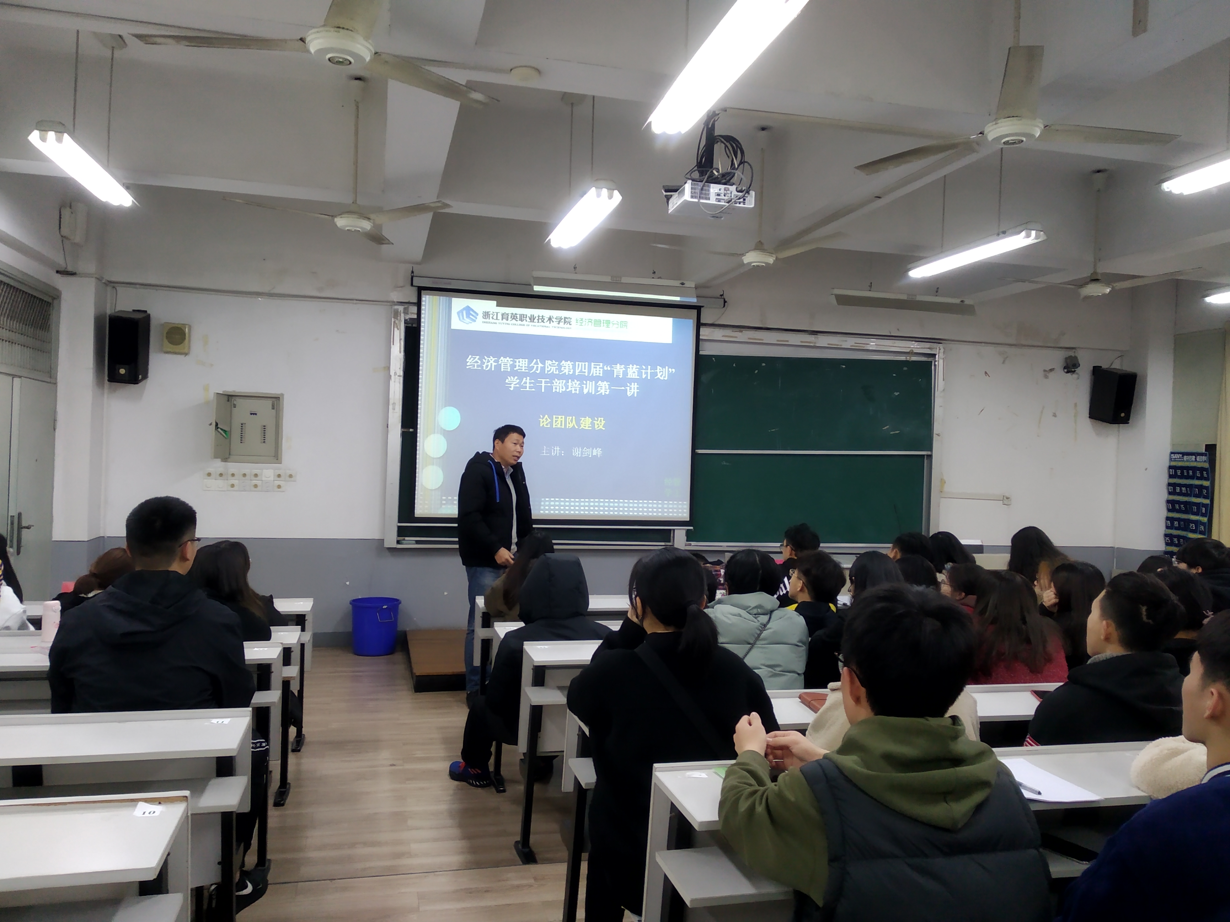 12月4日晚,经济管理分院第四届“青蓝计划”学生干部培训正式开班。经济管理分院党总支部书记谢剑峰,团总支部书记杨梦乐老师,辅导员翁蕾老师、张钦威老师,18级学生干部代表以及19级学生干部代表参加了此次开班典礼。
