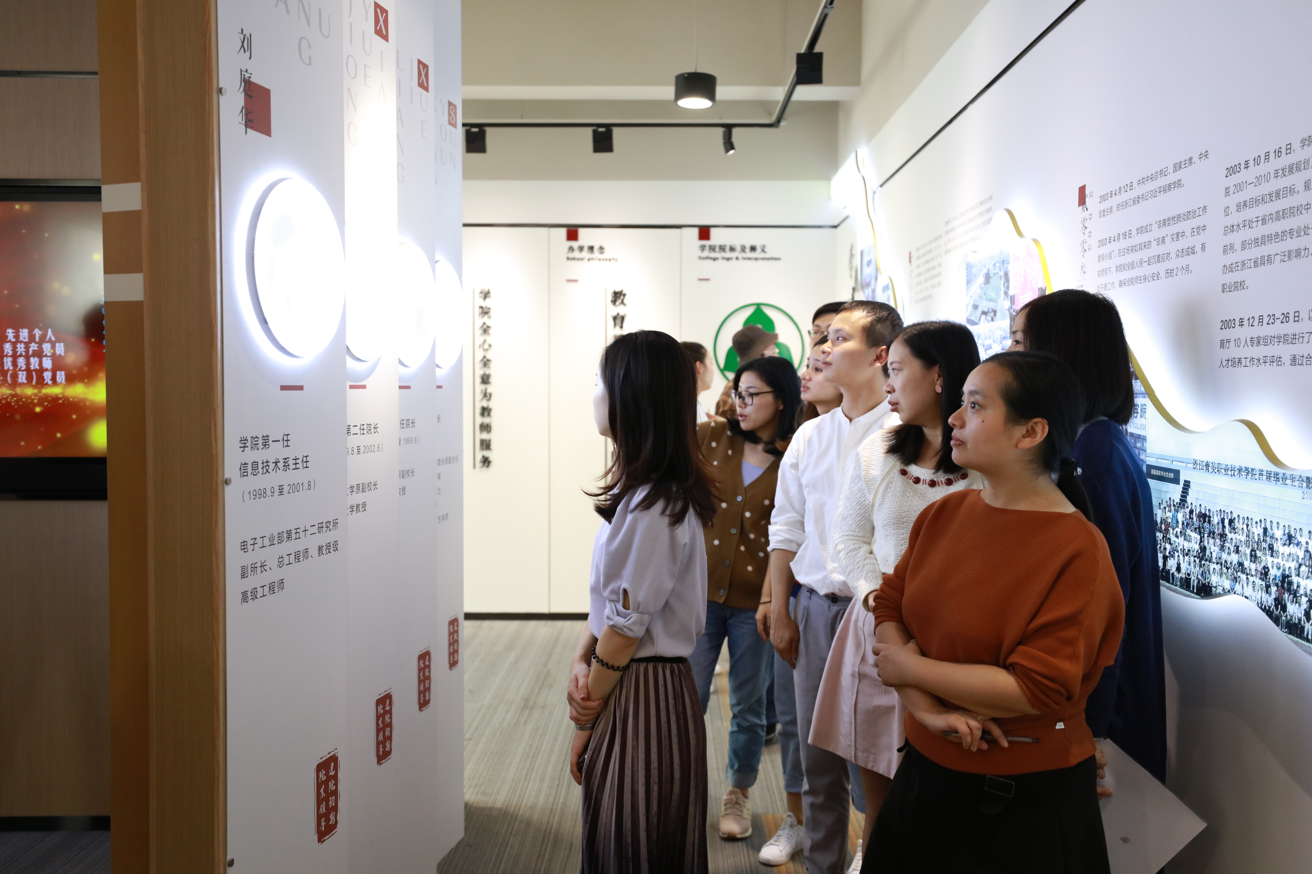 进入馆内,老师们首先参观的是时任浙江省委书记习近平同志来校考察的影像资料,对我院提出了“三个不错”的高度评价。之后讲解员为老师们仔细地梳理了学院从创办至今的历史脉络和取得的辉煌成就,大家时而聚集在讲解员身边聆听讲解,时而分散开仔细了解自己感兴趣的史料。在讲解员的引导下,老师们了解了学院的建校历程,对学院的历史以及为社会作出的卓越贡献表示赞叹;
