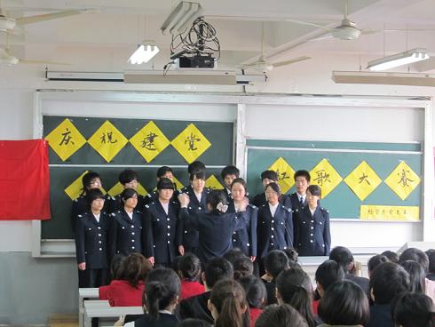 一首《我爱北京天安门》拉开了本次活动的序幕,每位参赛歌手都精神饱满,热情高涨,展现出了党章学校小组应有的风采。整场比赛,每个小组都各有特色,给大家留下了深刻的印象。例如10国A的《兵妹妹》,她们穿着整齐的军装,声音响亮,似乎自己也沉浸在军队之中,博得了场下的阵阵掌声。09英语B班的7位同学,穿着花色衬衫,声音洪亮、节奏统一、音调鲜明;还有10国C的八位同学,她们变化多端的队伍、嘹亮的歌声、创新的开场白等等都表现出超强的感染力。参加本次大赛的二十支队伍都表现的很优秀,各自展现出属于自己的精神风貌。