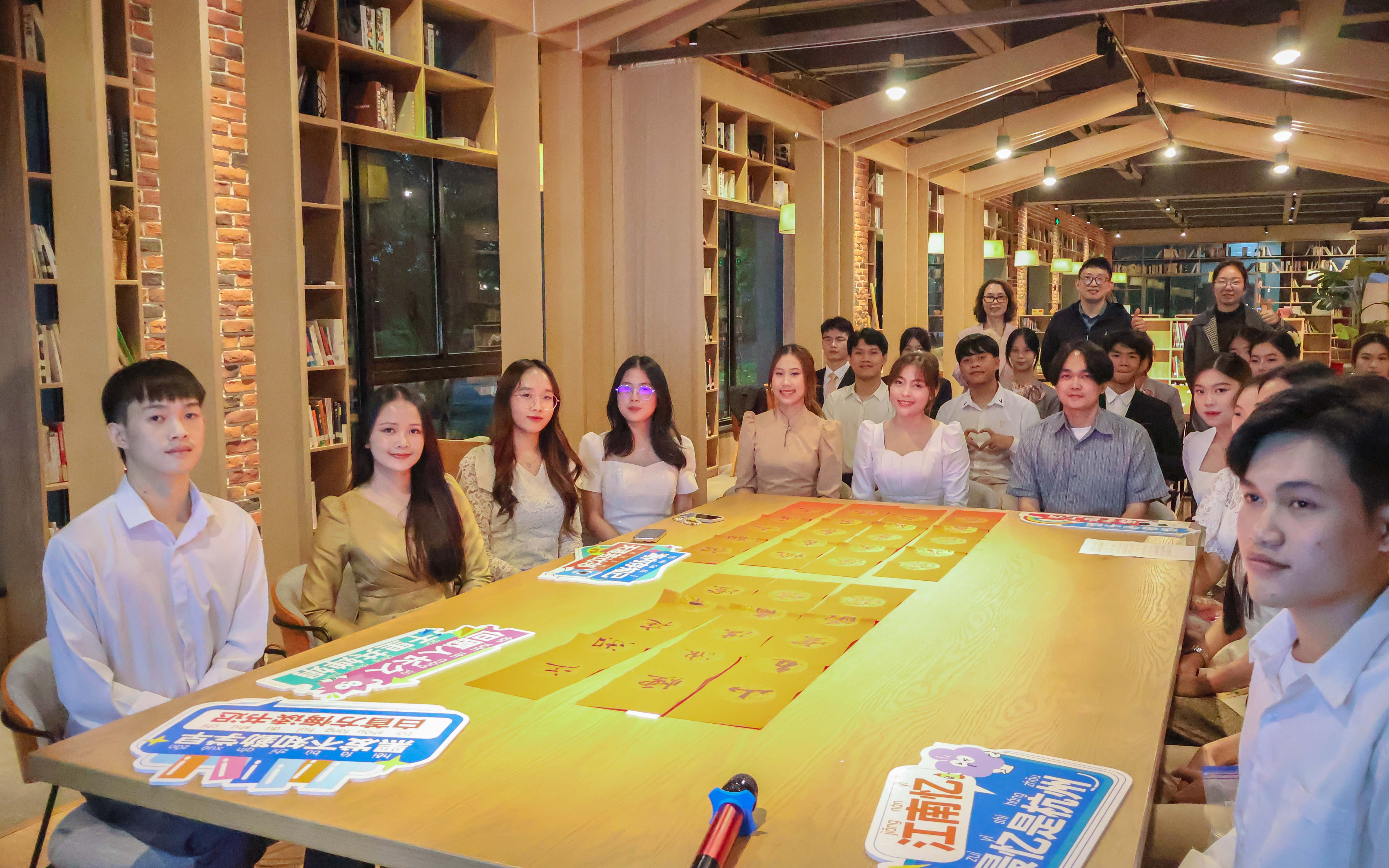 11月7日下午,智慧旅游学院"汉语桥"系列活动之"诗画杭州,最美育英"中国诗词分享会在书吧举办。来自老挝的留学生与6名中国学子共聚一堂,在葛秀华老师、辅导员董文老师的指导下,于智慧旅游学院副院长、党总支副书记张丹的引领下,开启了一场跨越国界的文化对话。