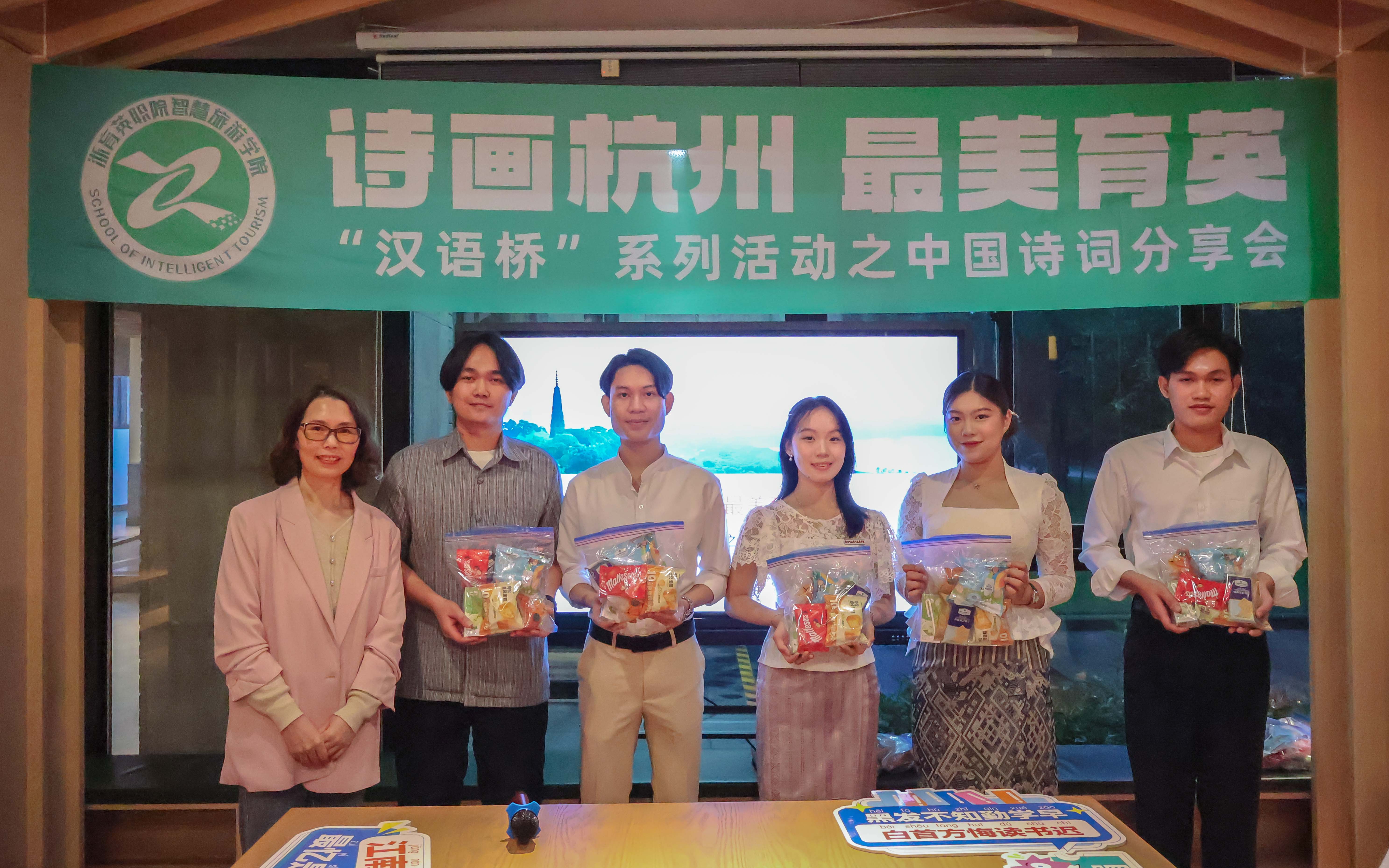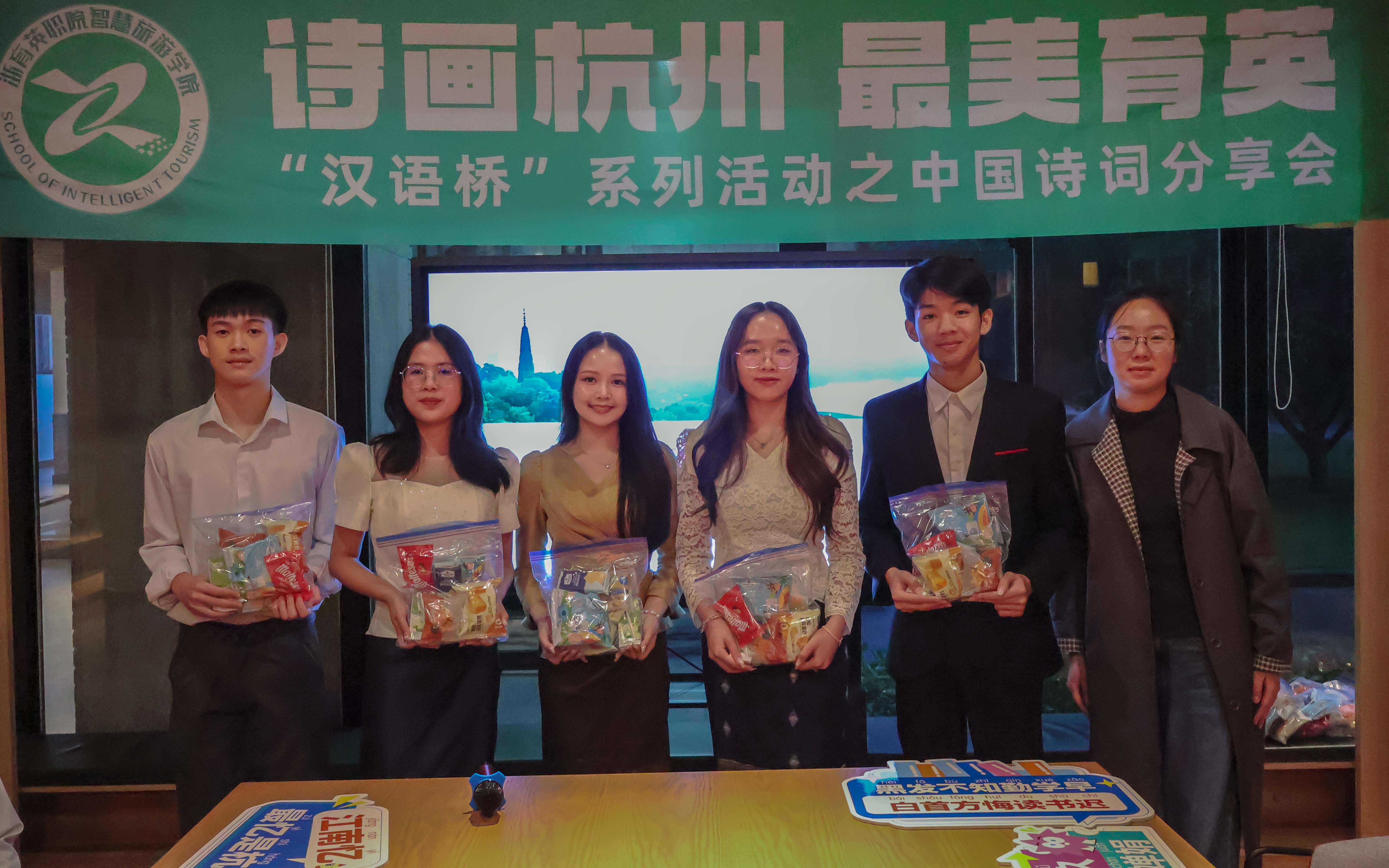 这场以诗为媒的文化盛宴,在秋日杭城绘就了一幅多元共融的画卷。正如董文老师所言:"当老挝学子用中文念出'江南忆'时,我们看到的不仅是语言的交融,更是人类对美好情感的共同向往。"未来,智慧旅游学院将持续以"汉语桥"为纽带,让更多国际青年在诗词歌赋中读懂中国、爱上杭州。