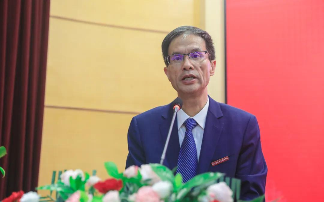 丁金昌致辞,他对2025级老挝留学生表示热烈欢迎,并回顾了学校与老挝教育与体育部职业技术教育司的合作历程、“中老育英丝路学院”建设以及老挝学历留学生培养成果,并对老挝留学生提出四点期望。一是志存高远,不惧风雨、向阳生长,勇敢面对挑战,不断超越自我;二是以开放之心,尊重差异、倾听不同,让文化的交流成为心灵的对话,让友谊如湄公河水般源远流长;三是积极融入校园生活,在课堂、社团和各类文化活动中勇敢展示自己,让青春因参与而闪亮,因尝试而多彩;四是不忘初心,牢记责任,好好学习,做中老友谊的使者,成为连接两国的坚实桥梁,用实际行动,为两国友好注入青春力量,续写中老情谊的新篇章。