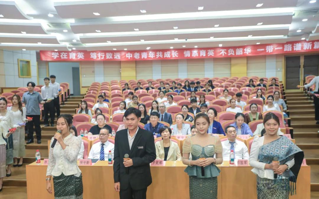 2024级老挝留学生进行主题展示,齐唱和朗诵《让我们荡起双浆》。