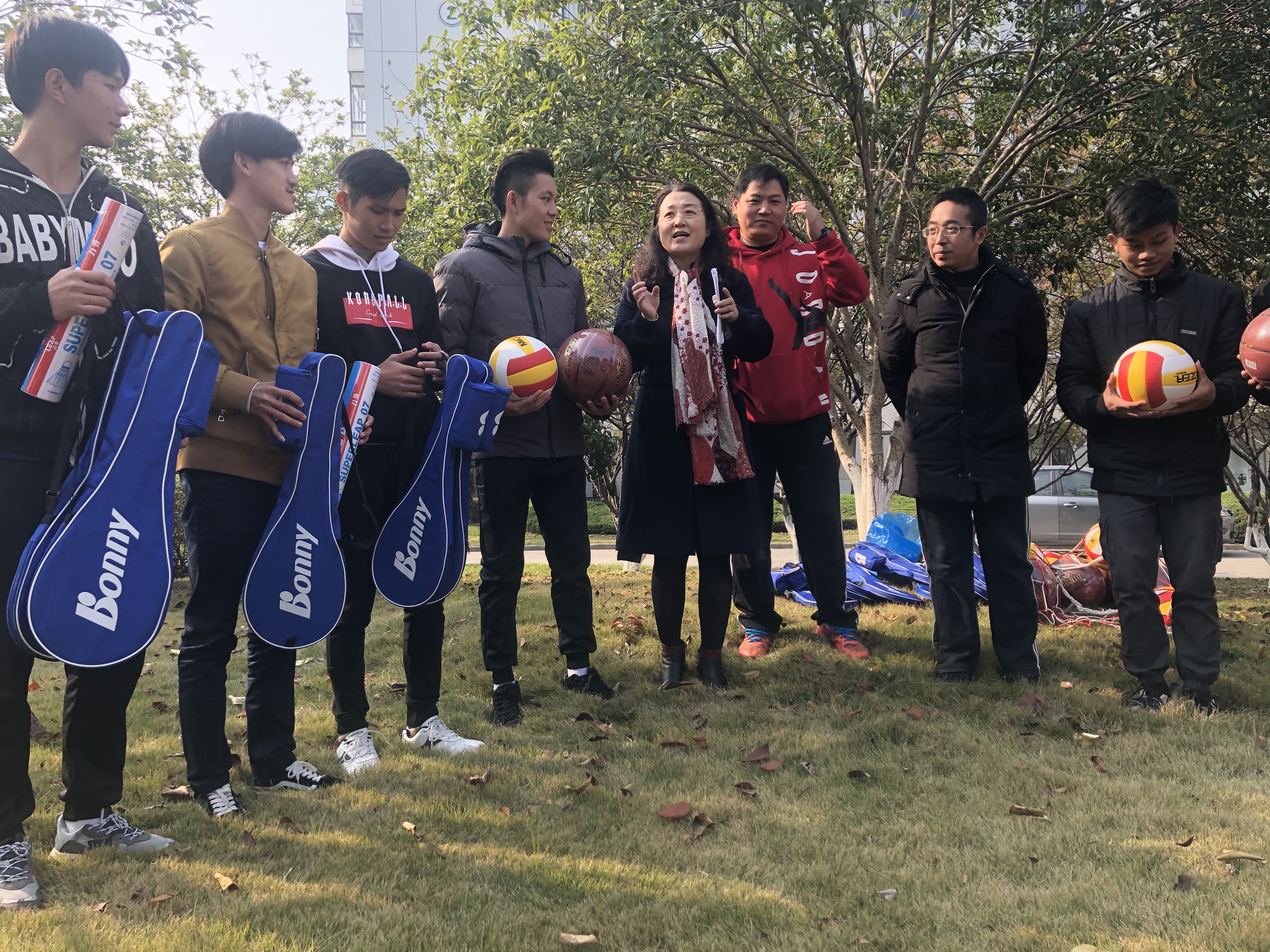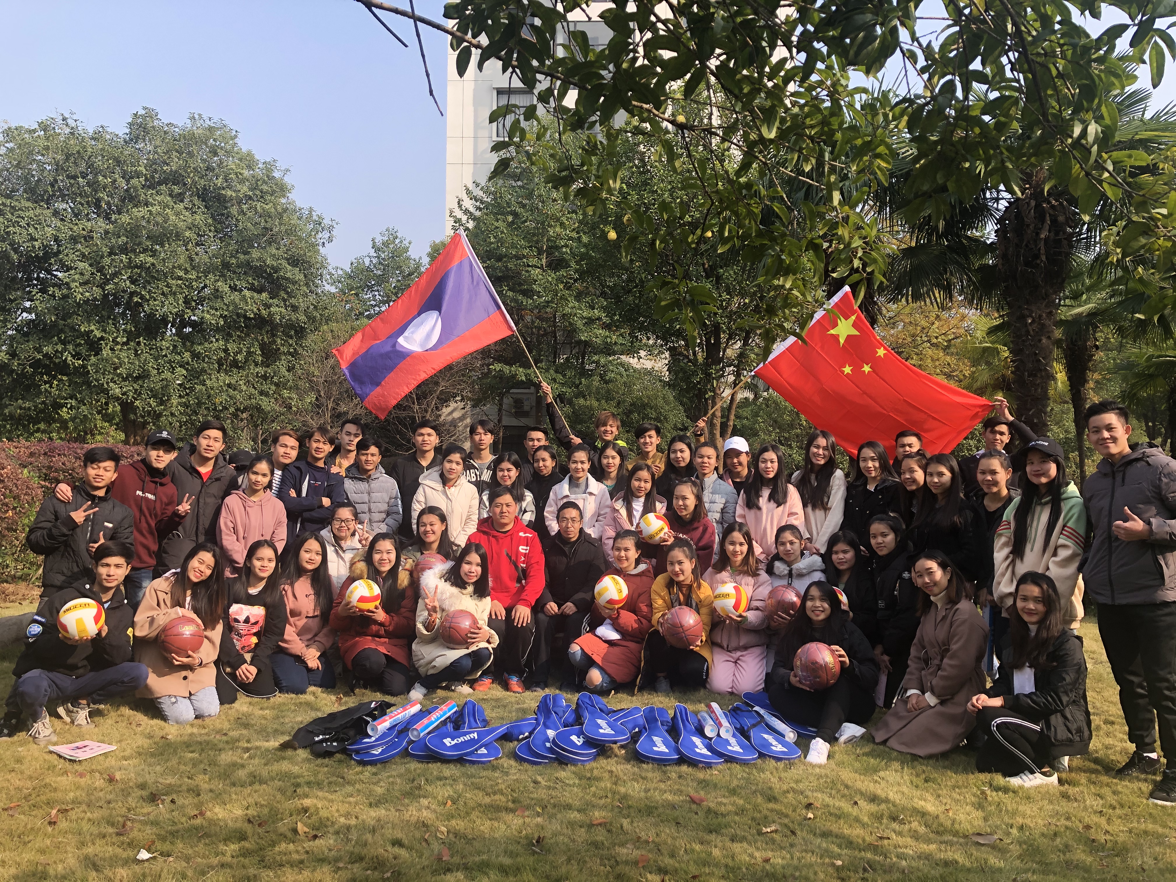 首先,谢鑫书记对全体留学生表达了对老挝国庆节最衷心的祝福。并对上次老挝高级研修班到来时老挝学生的表演给予了肯定与夸赞,谢鑫书记说:“16级的学长学姐毕业回到老挝后,都在各自的工作岗位上继续努力奋斗着,把在中国学习到的知识很好的运用到了自己的工作中。希望17、18、19级的同学们可以在中国继续努力学习,增加自己的能力,未来也把学到的知识带到老挝,多交流两国文化。”接着,黄忠华老师与季勋龙代表徐晓斌院助携全体体艺部老师为老挝留学生送上了节日礼物,有排球、篮球、羽毛球拍等运动器材,老挝学生都非常高兴,也非常惊喜,在收到礼物时不禁欢呼起来。老挝学生表示:在育英这个充满爱的大家庭,一直在感受到育英给予的温暖,感谢育英,感谢这个学校的所有领导老师给予我们满满的爱。