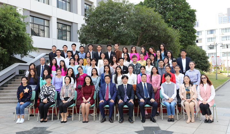 王锡耀发表讲话,今年是中华人民共和国成立 70周年,非常高兴同学们能在这一年来到我们的国家,共同见证中国 70年来所取得的伟大成就。育英学院作为浙江省第一所招收老挝学历留学生的高职院校,同时也是老挝来华留学生人数最多的高职院校。他对同学们来到育英学院求学表示热烈欢迎,并向同学们提出要求:一要了解中华民族、了解中国文化,在学好中国语言和专业知识的同时,深入感知中华文明的独特魅力,成为中老文化交流的使者,为文明的交流和世界发展做出贡献。二要学会做人。做人首先要讲诚信,要懂得感恩。要特别珍惜中国提供的学习机会和留学条件,不断提升自己的道德修养,做一个积极向上,充满正能量的青年学生和世界公民。三要勇敢追梦。要用自己的梦想去成就国家的梦想。在追梦路上要坚定信念、不畏曲折。四要广交朋友。期待同学们在杭州找到自己的友谊,在育英找到自己的朋友。