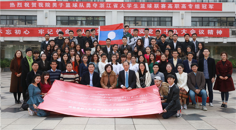 院长盛健表示中国人民和老挝人民之间有着深厚的友谊。学院继2015年举办了老挝教育与体育部部属院校骨干教师培训后,在2016、2017年招收了两届老挝留学生,成为浙江省第一所招收成建制专业留学生的院校。老挝留学生的勤奋、努力、善良、能歌善舞等,受到了全院师生的喜爱。他祝愿老挝留学生在这里快乐学习,快乐生活!希望学院的同学和老挝留学生都能成为友谊的使者,为推进两国人民的友好往来作出贡献。