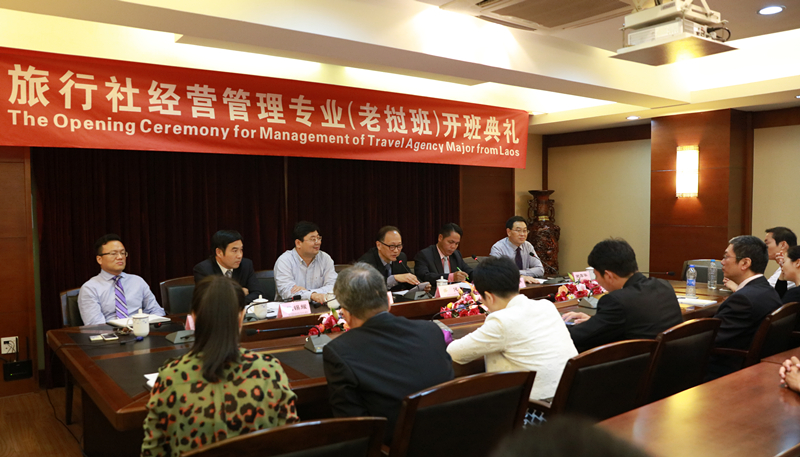 王锡耀介绍了该班的培养计划。老挝留学生将在学院完成汉语、旅游英语、导游业务、旅行社经营和管理等课程学习。