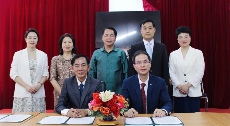 3月27日,学校与老挝万象省技术学院共同举行“中老育英丝路学院”签约挂牌仪式。老挝教育部职业技术教育司副司长通萨亲临现场,见证了这一重要时刻。