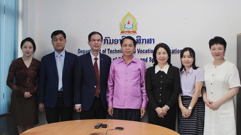 在老挝期间,学校代表团访问了老挝教育部职业技术教育司。丁金昌向通萨详细介绍了我校老挝留学生的人才培养模式、学生就业、与老挝高校共建“中老育英丝路学院”等相关情况,并表示将发挥“丝路学院”作用,进一步加强与职教司在人才培养、技能培训、文化交流、课程标准输出的合作与交流。