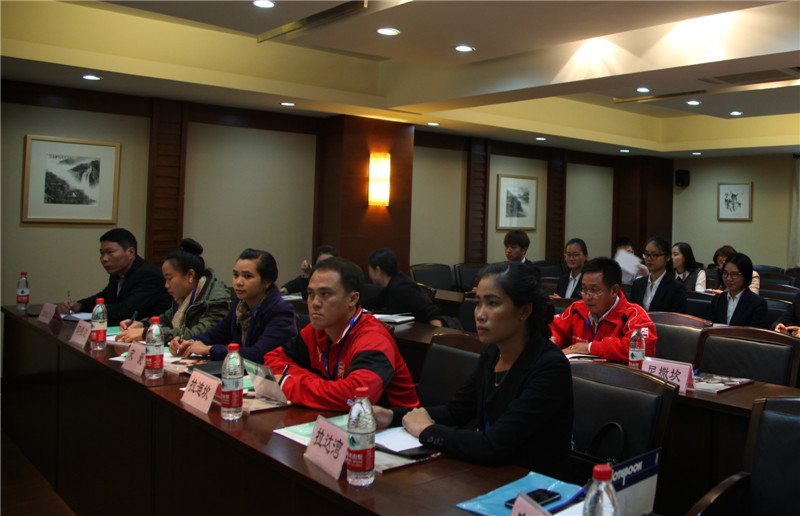 王锡耀致欢迎辞,他代表学院欢迎老挝教育部考察团来中国参加由我院承办的旅游类骨干教师培训班,介绍了我院办学现状、专业建设、人才培养等方面情况,并祝愿考察团的骨干教师们在我院学习顺利,满意而归。