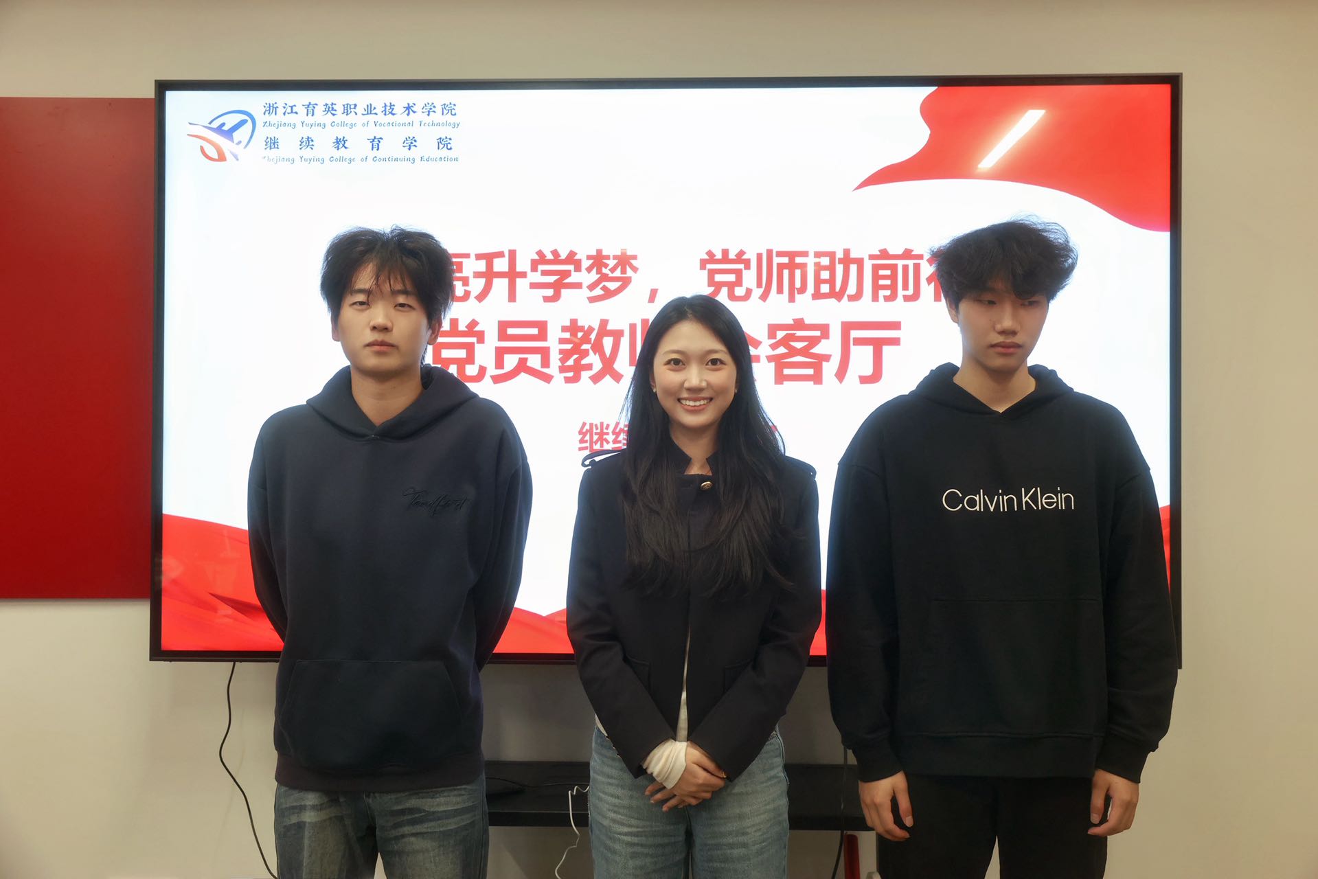 2025年11月04日下午,继续教育学院在党群服务中心举办了以“点亮升学梦,党师助前行”为主题的党员教师会客厅活动。学院党支部副书记、院长助理李巧巧,党员教师代表奚慧新、潘凯丽、方依纯、金赛亚和25技能班学生代表参加活动。