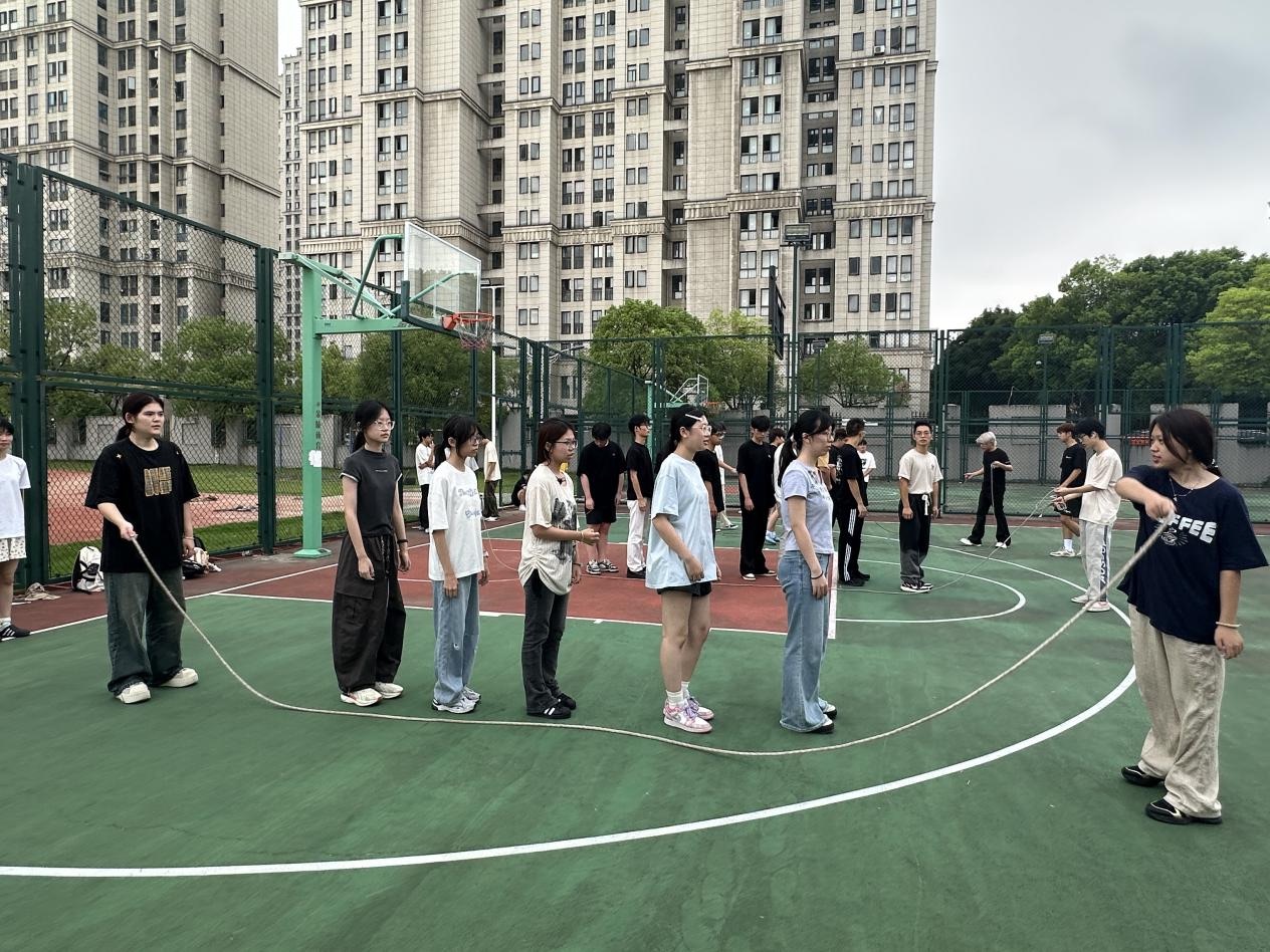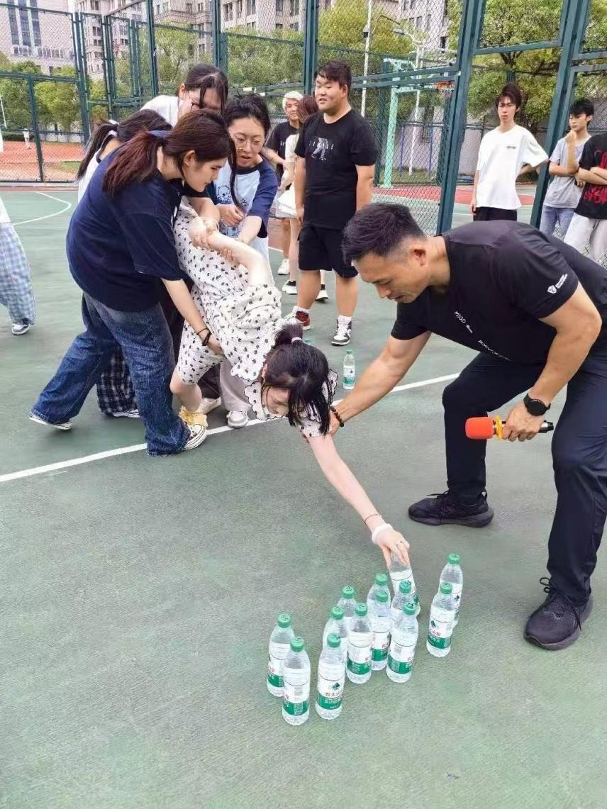 随后,各类团队竞技项目依次展开。无论是需要同步节奏的协作挑战—跳绳、取水活动、传递绳,还是考验配合的接力比拼--传球、飓风跑,每个项目里都满是同学们互相鼓劲的呐喊。遇到失误时,没人抱怨,大家反而互相打气;取得进展时,所有人共同欢呼。就像“木桶效应”所揭示的,团队的高度从不由最优秀的个体决定,而是靠大家一起补齐短板、并肩前行。在一次次协作中,同学们深刻体会到“一人为众,众为一家”的意义,默契值不断飙升。