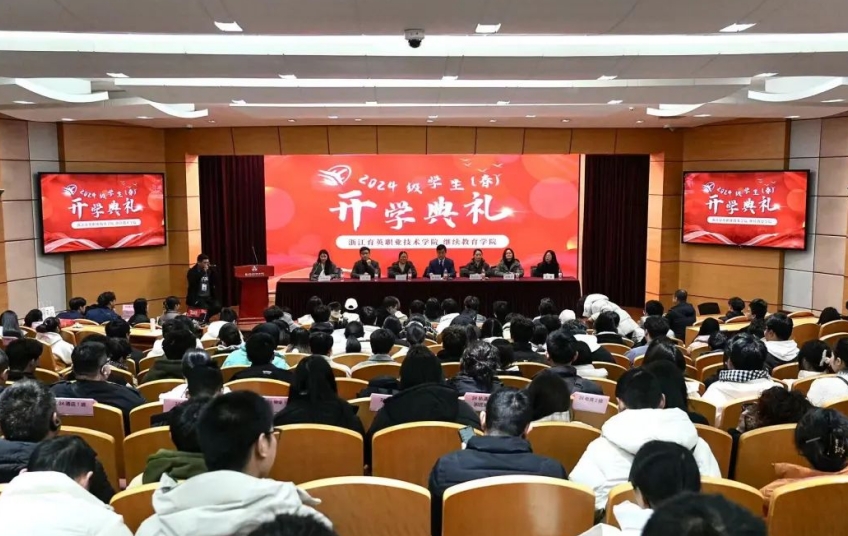 2024年3月2日上午,浙江育英职业技术学院继续教育学院2024级新生春季开学典礼在学校综合楼三号报告厅举行。学校副校长、学院院长、学院党支部书记崔海辉,学院党支部副书记、院长助理李巧巧,综合办主任彭鑫,学工办主任、团总支书记金赛亚,教务办主任王卫平,招就办主任沈忱及24级新生辅导员出席开学典礼,团总支副书记方依纯主持开学典礼。