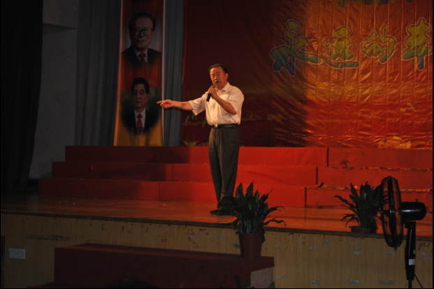 分院姜润杭副院长在舞台上演唱《把一切献给党》