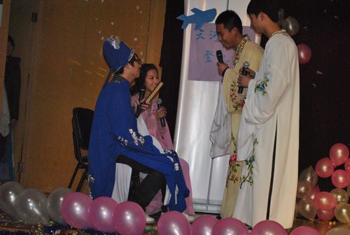 晚上8点40左右,最后一个由我们09空乘5班送上的喜剧小品《新梁祝外传》在同学们的企盼中粉墨登场,演员们滑稽的表演、幽默的语言,羸得了全场观众的热烈掌声;独特的创新立意,给台下评委老师和同学们留下了深刻的印象。同时,充分展示了空乘学子的英语口语水平和表演技能的体现,也进一步达到了寓学于乐的效果,为全院营造了学习英语的浓厚氛围。