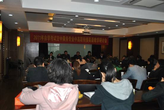 11月30日上午,我院2011年自学考试空中乘务专业中高职衔接英语教学研讨会在热烈、友好的合作气氛中如期召开。浙江育英教育集团副总裁郭丽萍,我继续教育分院院长耿大玉、常务副院长卢庆富、教学副院长黄华出席会议,参加会议的还有来自全省20多所中职学校副校长、教务处主任、专业英语教师等共40余人。大会由分院办副主任姚实主持。