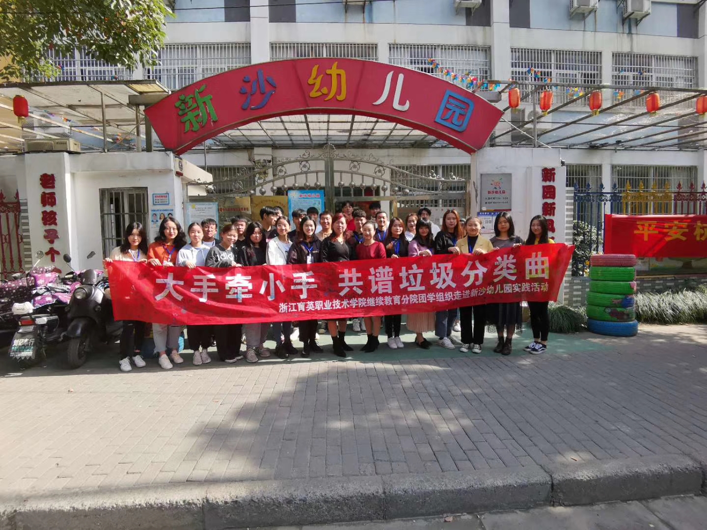 时下有句最流行的话语:“垃圾分类就是最流行的时尚”。垃圾分类,全民在行动。为增强幼儿园小朋友的环境保护意识,培养他们垃圾分类的习惯,2019年11月11日上午8:30,继续教育分院团学成员走进新沙幼儿园,在大班全年级开展了一场别开生面的垃圾分类主题教育实践活动。 为了提高课堂实践活动有效性和趣味性,同学们事先做了大量的准备工作:写策划书;在团总支书记李巧巧老师和新沙幼儿园园长的指导下修改了实践活动方案;学习垃圾分类相关知识;收集适合儿童垃圾分类教育的视频资料;购买垃圾分类宣传道具和活动奖品;认真备课,开动员分工会,事先演练,为实践活动的顺利进行打好基础。 在活动课堂上,小朋友们学会了纸箱、塑料、碎玻璃等属于可回收垃圾;过期药品、废旧电池等属于有害垃圾;陶瓷罐等属于其他垃圾;果核、果皮、剩菜剩饭等都是厨余垃圾。在操作实践过程中,小朋友们把表示各类垃圾物品的小卡片进行分类,再分别装到不同颜色的垃圾桶里,他们认真分类的样子像极了小大人,非常可爱。我们的课堂上还准备了各种益智小游戏,劳逸结合,在玩中学,在学中玩,以积累贴纸总换小奖品的形式提高小朋友的课堂专注力和活动参与率。小朋友们用稚嫩的字迹在我们的横幅上签上了自己的名字。看到小朋友认真学习、积极配合的过程,同学们感到非常开心,很有成就感。活动最后,同学们已经和各班级的小朋友们打成了一片,一起唱歌跳舞,在欢乐的笑声中结束了为期半天的实践活动。 参加此次实践活动的团学成员们和新沙幼儿园正副院长合影。 此次活动得到了新沙幼儿园领导的一致好评。此次活动让小朋友们进一步了解“垃圾”的类别和垃圾分类的方法,相信他们会逐渐养成将垃圾归类投放指定垃圾箱的好习惯,也会将这一好习惯延伸到家庭生活和社会生活当中,以自己的行动带动周边的人,真正做到垃圾分类,人人有责! 大手牵小手,共谱垃圾分类曲,让我们一起保护美丽的地球家园,共同为环境保护出一份力!
