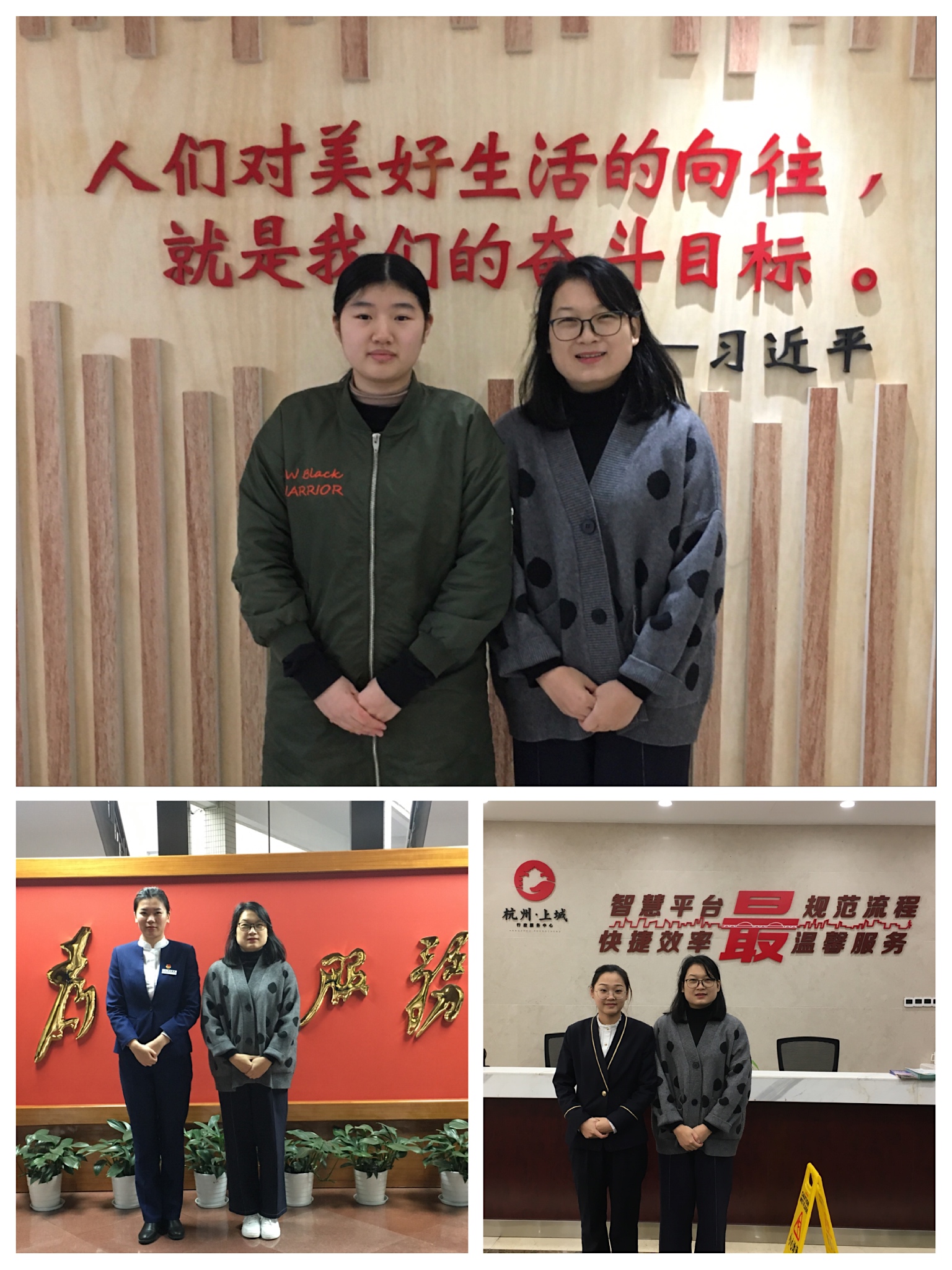 为深入了解大三学生的实习就业情况,第11、12周,民航交通分院实训中心指导老师楼海燕走访了分别在上海铁路局杭州客运段、浙江省人民大会堂、上城区行政服务中心、学悦青少年中心、浙江省档案事务所、杭州西投物业服务管理有限公司、布莱德服饰、中公教育等单位实习的17位同学们。