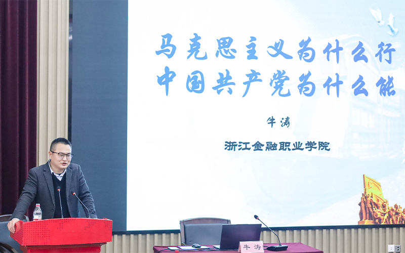 最后,浙江金融职业学院马克思主义学院院长,浙江省首批理论宣讲名师工作室负责人牛涛教授为学员带来了精彩的第一课《马克思主义为什么行?中国共产党为什么能?》。