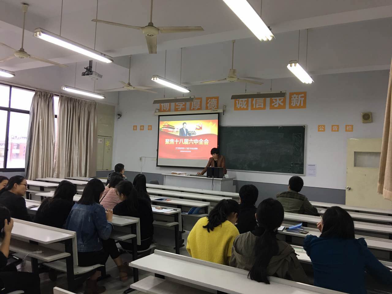 11月15日下午,信息分院党总支在1507教室开展党员固定活动日,全体党员学习党的十八届六中全会精神,分院党总支罗妮娜书记主讲。