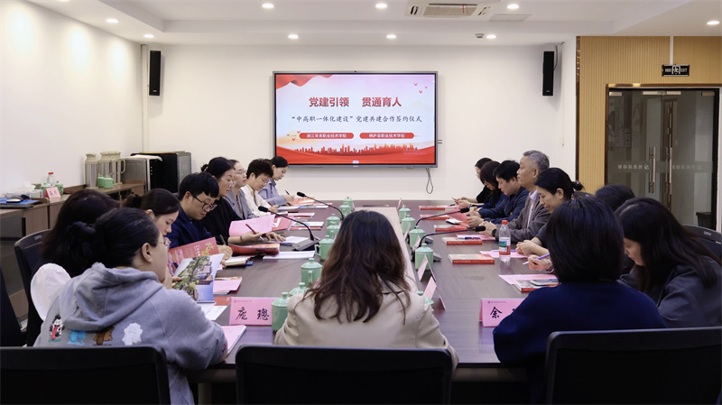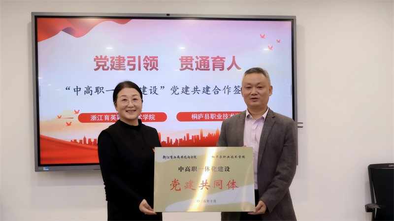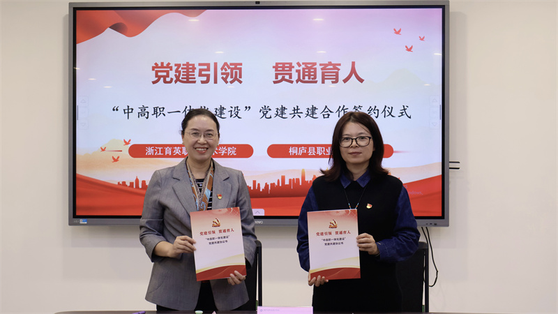 黄华与桐庐县职业技术学校第一党支部(烹旅艺术)签署“职匠工坊”党建共建协议。