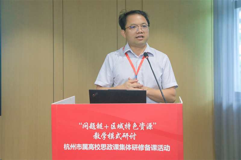 杭州师范大学、浙大城市学院、杭州职业技术大学、杭州科技职业技术学院、杭州万向职业技术学院、浙江育英职业技术学院思政课教师代表围绕《习近平新时代中国特色社会主义思想概论》有关章节开展说课交流,分享了丰富多元的教学案例。