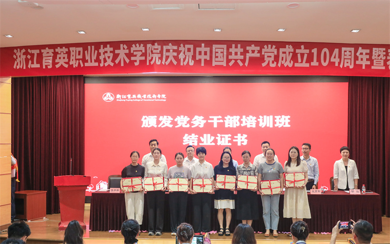 崔海辉宣读《党务干部培训班结业名单的通知》。主席台领导为党务干部代表颁发结业证书。