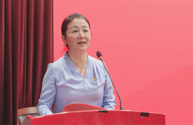 谢鑫发表讲话。她说,一年来,全体师生党员奋战在教育教学、科研管理、后勤服务等各个岗位,推进党建与思政工作不断提质升级,“育英党建红”品牌愈发响亮,党建引领事业发展更加有力。育英党建在全国舞台上展现风采,得到教育主管部门认可,赢得社会广泛关注。这一年,学校工作在党建引领下全面发展,持续把红色基因厚植于人才培养全过程,“三种精神”成为学生的“精神坐标”;持续夯实基层党组织党建基础,持续抓好党员干部队伍建设;持续挖掘各基层党组织党建特色,打响党建思政品牌;持续深化党群服务中心建设,强化党建工作以师生为中心的理念。