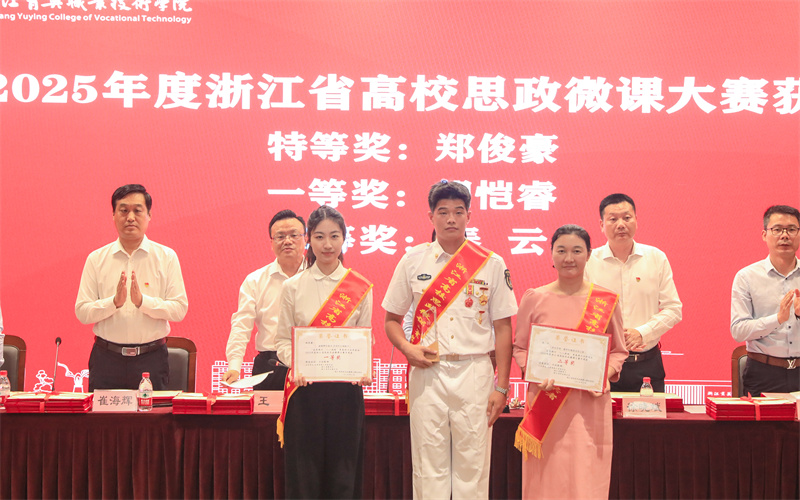 浙江省高校思政微课大赛教师组一等奖获得者胡恺睿和学生组特等奖获得者郑俊豪分别汇报展示优秀思政微课。