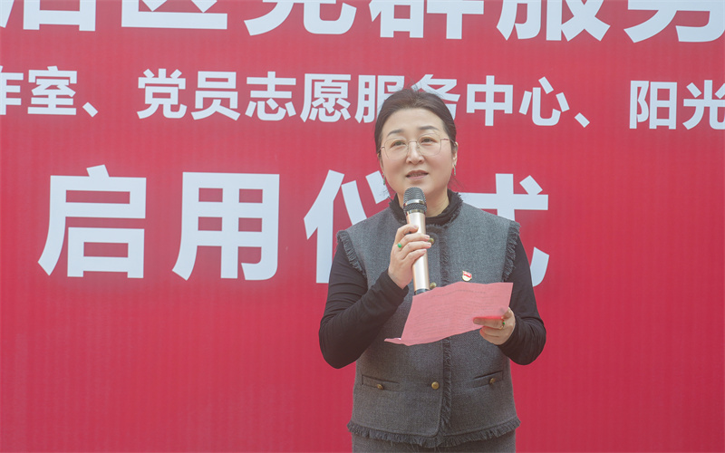 谢鑫致辞。她指出,新的党群服务中心延展到学生生活区,教育服务的内容不断拓展,服务形式更加多元。党委提出“师生的需求在哪里,党的工作就开展到哪里”,党委以党群服务全面便捷为工作目标,以“党建+党群服务”为载体,致力于将党群服务中心打造成集党建引领、教育咨询、业务办理等为一体的党建综合体,力求为全体学生提供多样化的服务,提供教育空间和展示空间。她强调,发挥好党群服务中心的功能和作用,一是要加强政治引领,强化思想理论武装,深挖学校校史富矿,引导全校广大党员师生进一步筑牢信仰之基、补足精神之钙、把稳思想之舵;二是要强化讲好育英故事,深挖校友资源,用鲜活生动的案例激励学生健康成长;三是强化组织育人,为师生排忧解难,把解决师生急难愁盼问题作为党群服务中心的宗旨,坚持为师生办实事。