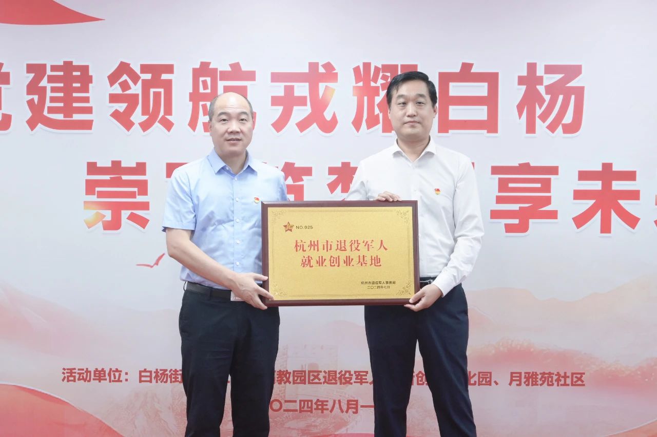 刘愚授予“杭州市退役军人就业创业基地”牌子。