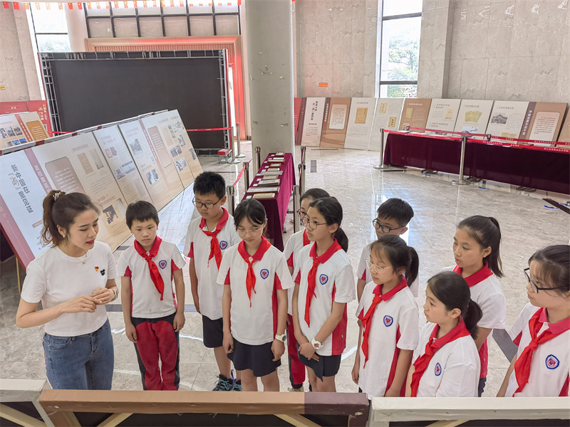 为推进大中小学思想政治教育一体化建设,学校邀请杭州实验外国语学校小学部学生参观展览,我校思政课教师和“00后星火宣讲团”成员为小学生们讲解了一堂生动的党史课。