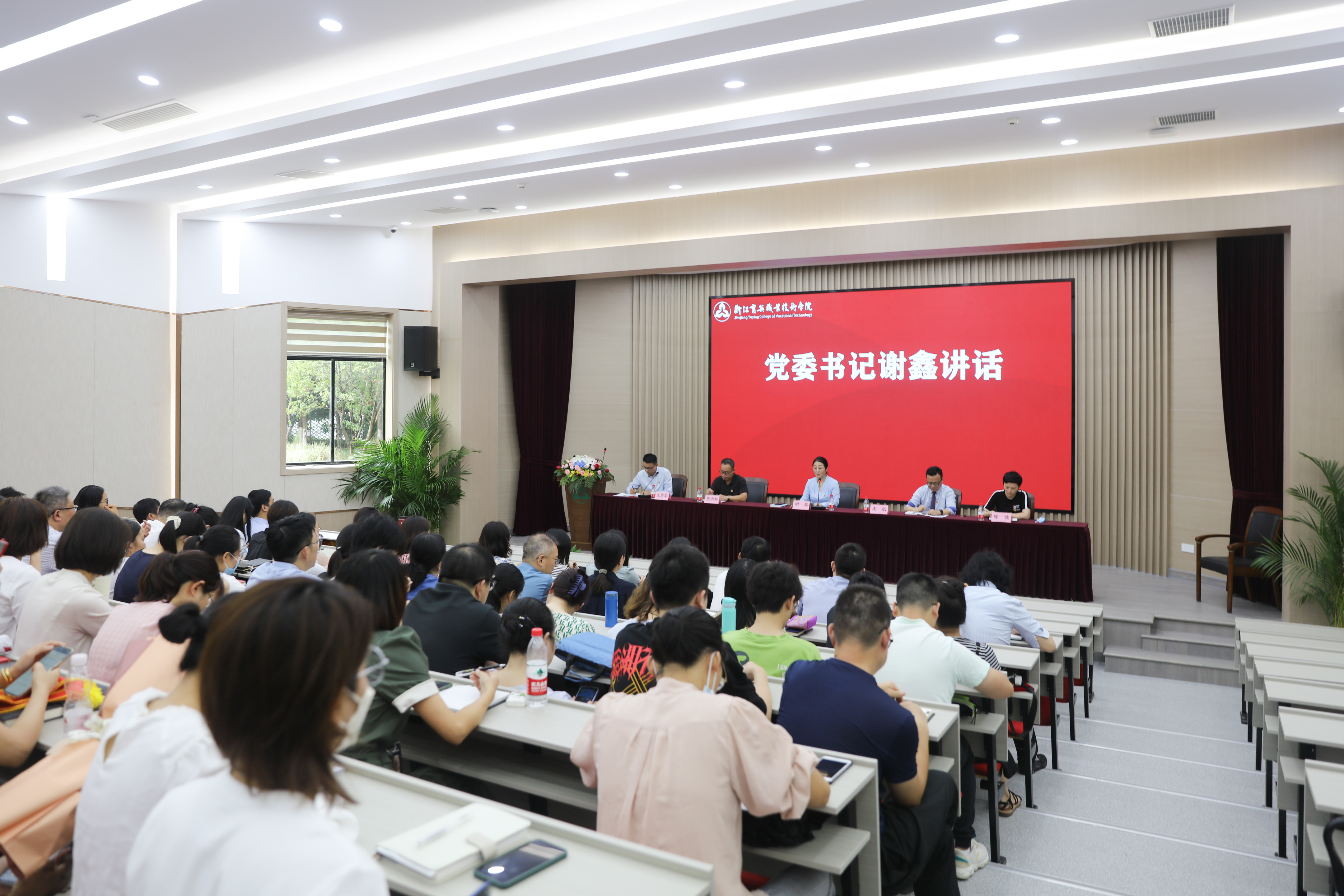 9月3日,学校全体党员大会在综合楼一号报告厅举行。党委书记谢鑫,纪委书记王敏,党委委员张中新、王贤军、邬佳出席。