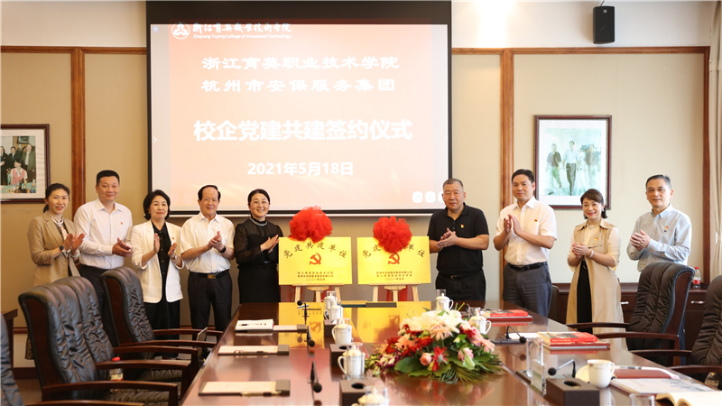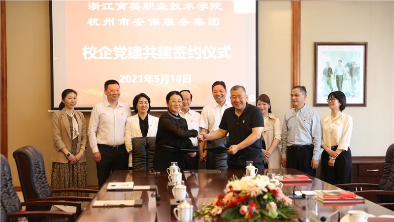 近日,学院与杭州市安保服务集团有限公司党建共建合作签约仪式在九楼会议室举行。学院终身名誉院长洪致平,执行院长黄爱平,党委书记、副院长谢鑫,副院长徐晓斌;公司党委书记、董事长郑雪林,党委副书记、纪委书记、副总经理方浩波等出席签约仪式。