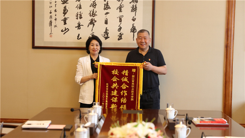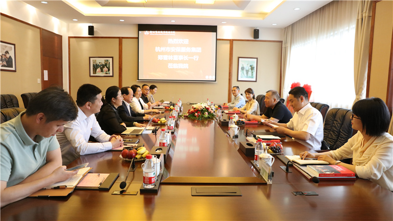 谢鑫介绍了学院党建发展历程、党建工作特色和亮点,特别介绍了2003年4月12日时任浙江省委书记习近平来到学院,专题调研保持共产党员先进性教育活动试点工作,与师生座谈并对学院作出“三个不错”的评价,记录当时情景的回忆文章被收录在《习近平与大学生朋友们》一书中。学院也先后获得省市先进基层党组织称号、全国高校党建工作样板支部、浙江省高校“双带头人”教师党支部工作室等荣誉。她表示,近年来,学院与杭州安保集团一直保持良好的合作关系,合作中双方优势互补,取得了非常好的效果。希望在双方友好合作的基础上,通过党建共建将校企合作进一步走深走实。